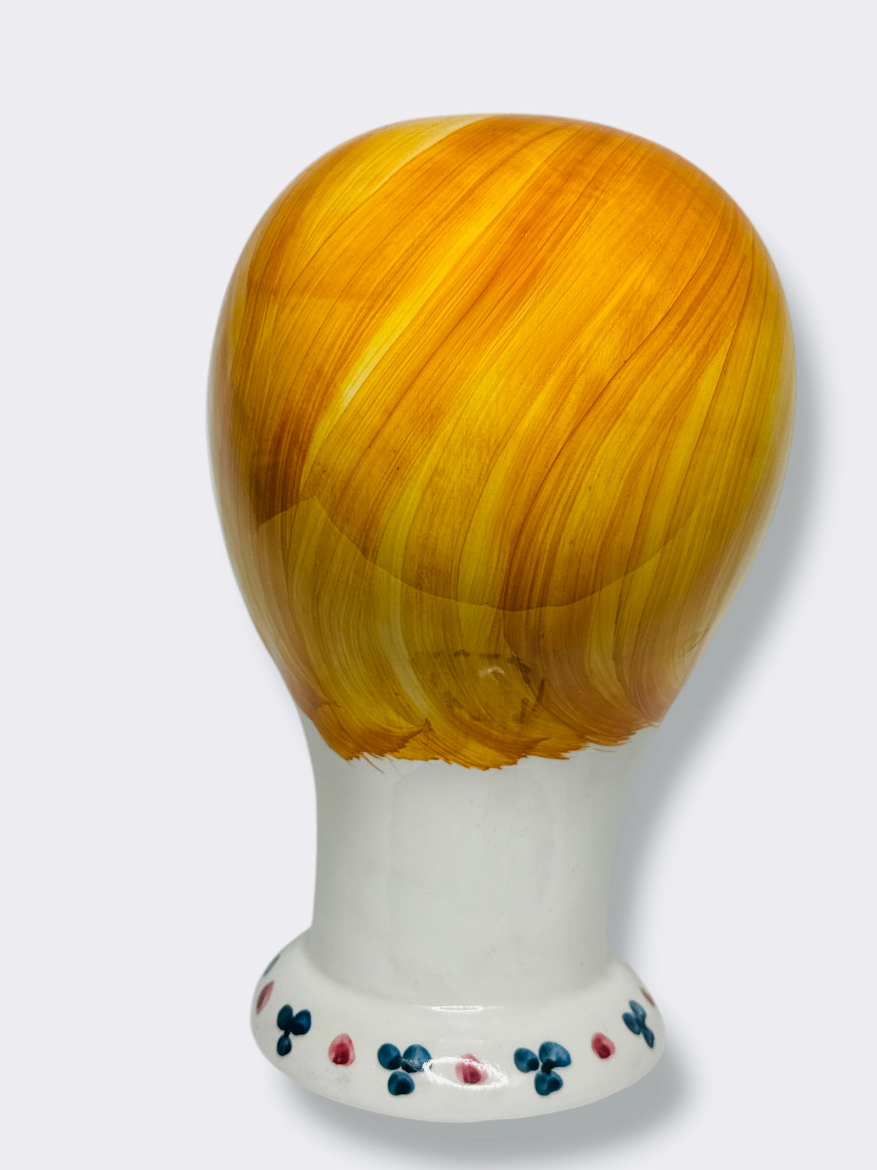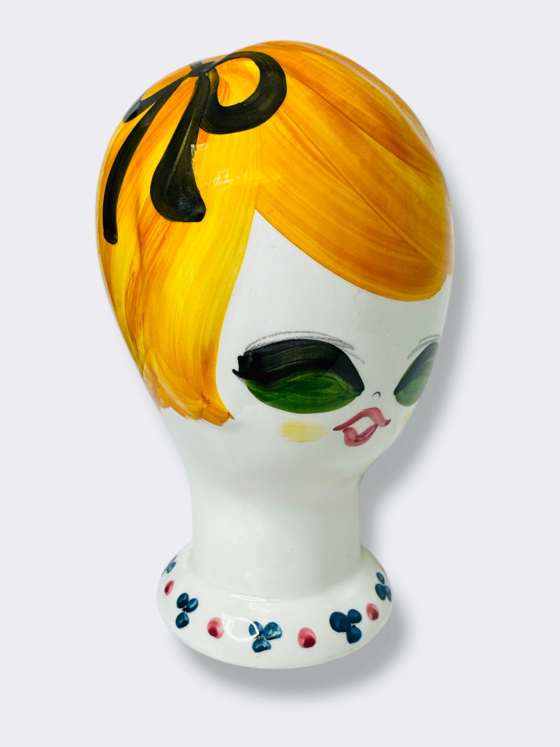 Whether used to display a hat, a wig, or styled solo as a statement piece, this rare ceramic stunner adds instant personality to any vanity, shelf, or showroom.