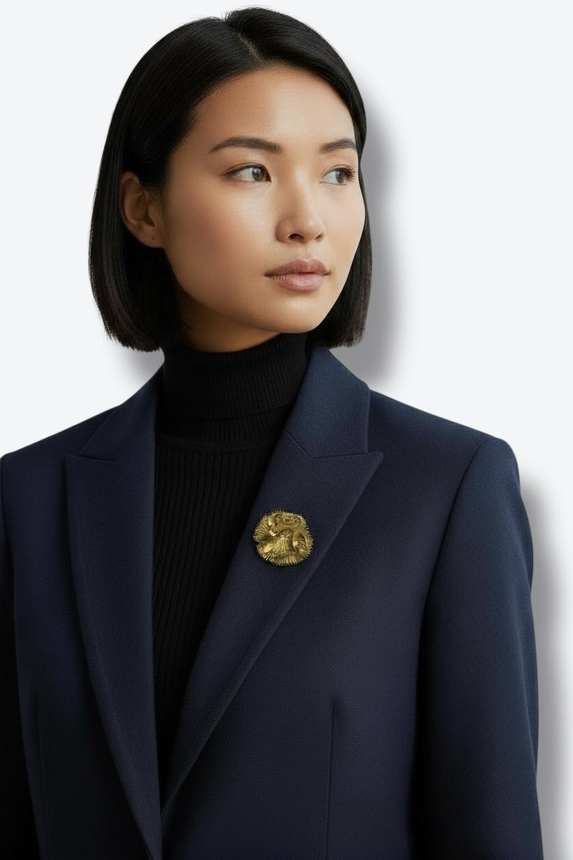 Style Tip: Pair it with a structured blazer or high-neck knit for a gallery-ready, vintage-modern look. For evening, pin it to a silk gown or velvet clutch to infuse your outfit with gilded drama and artful sophistication.