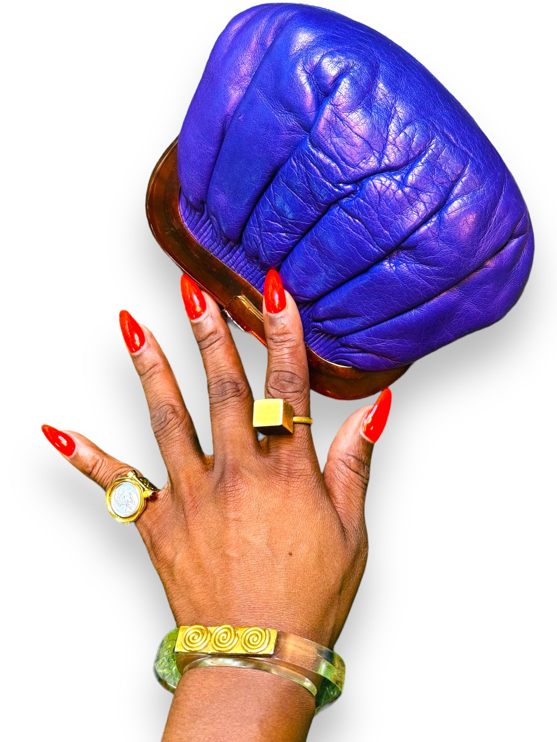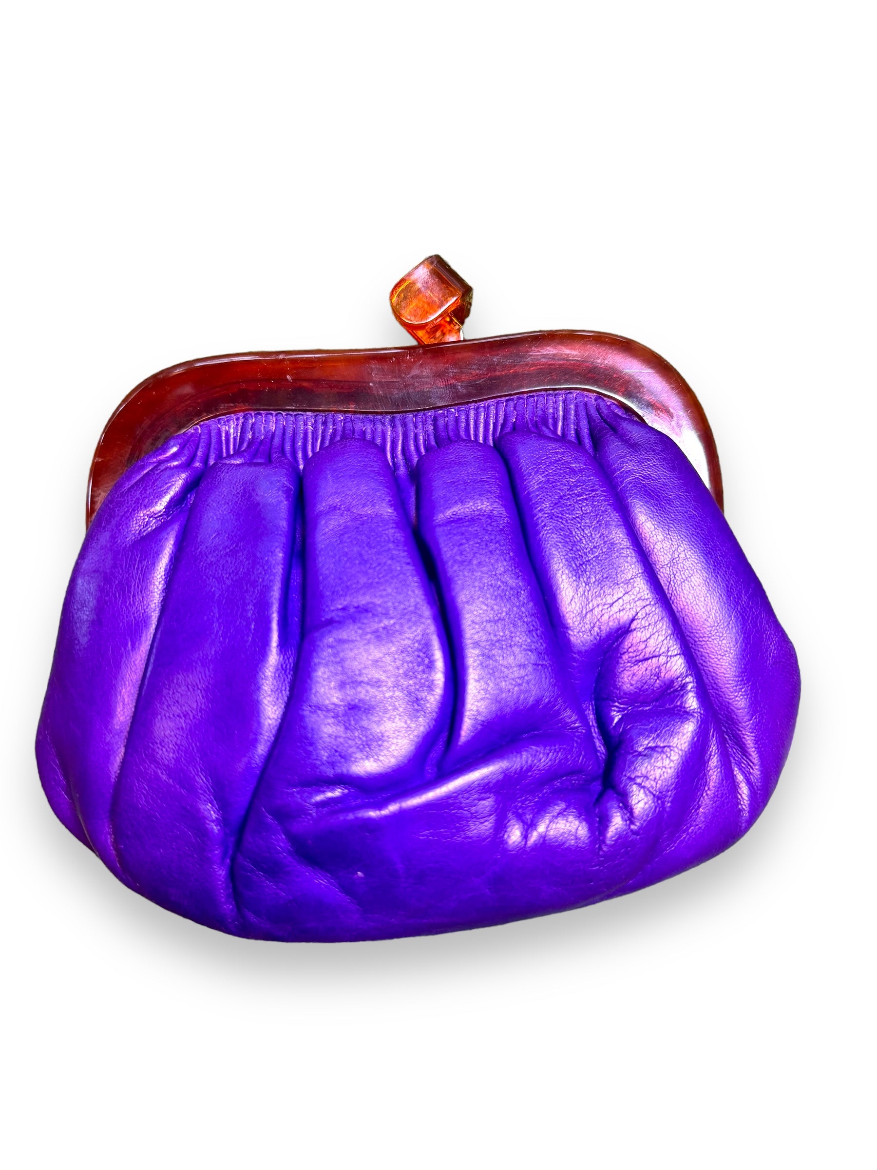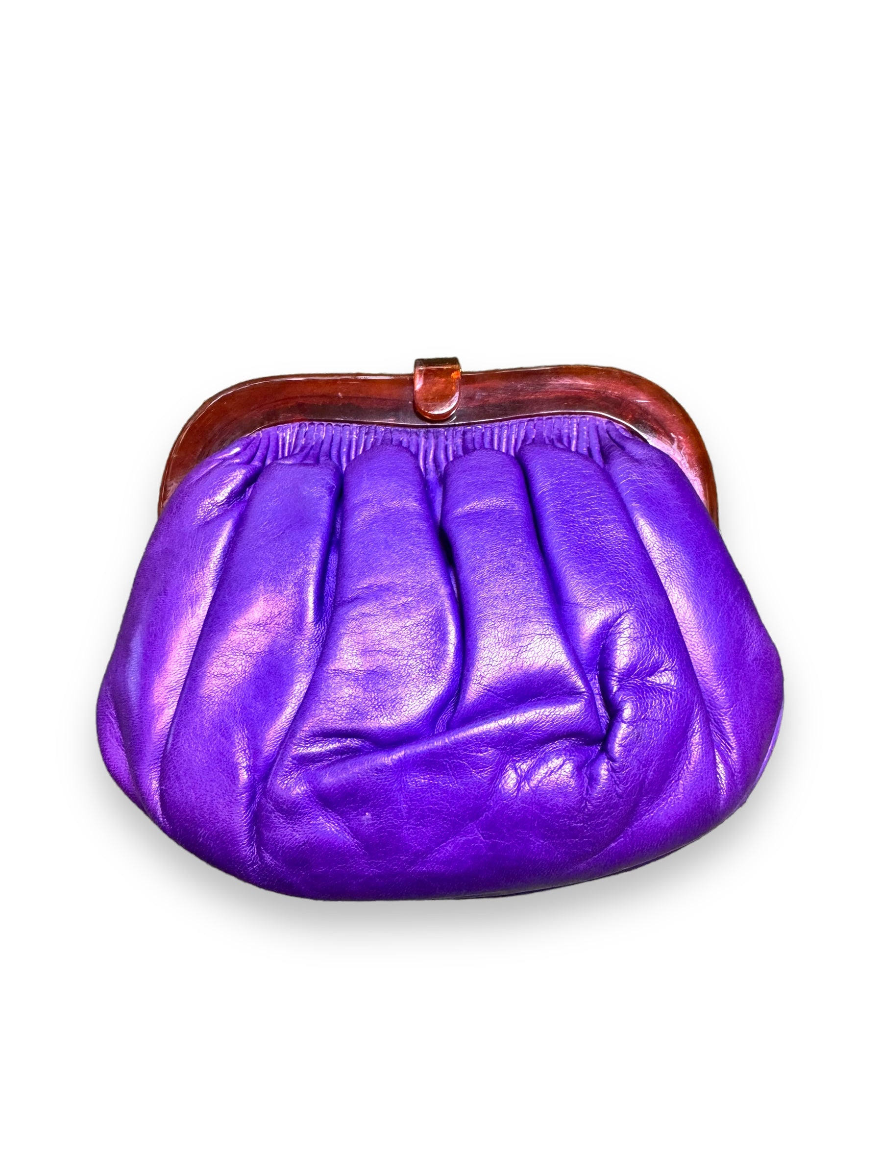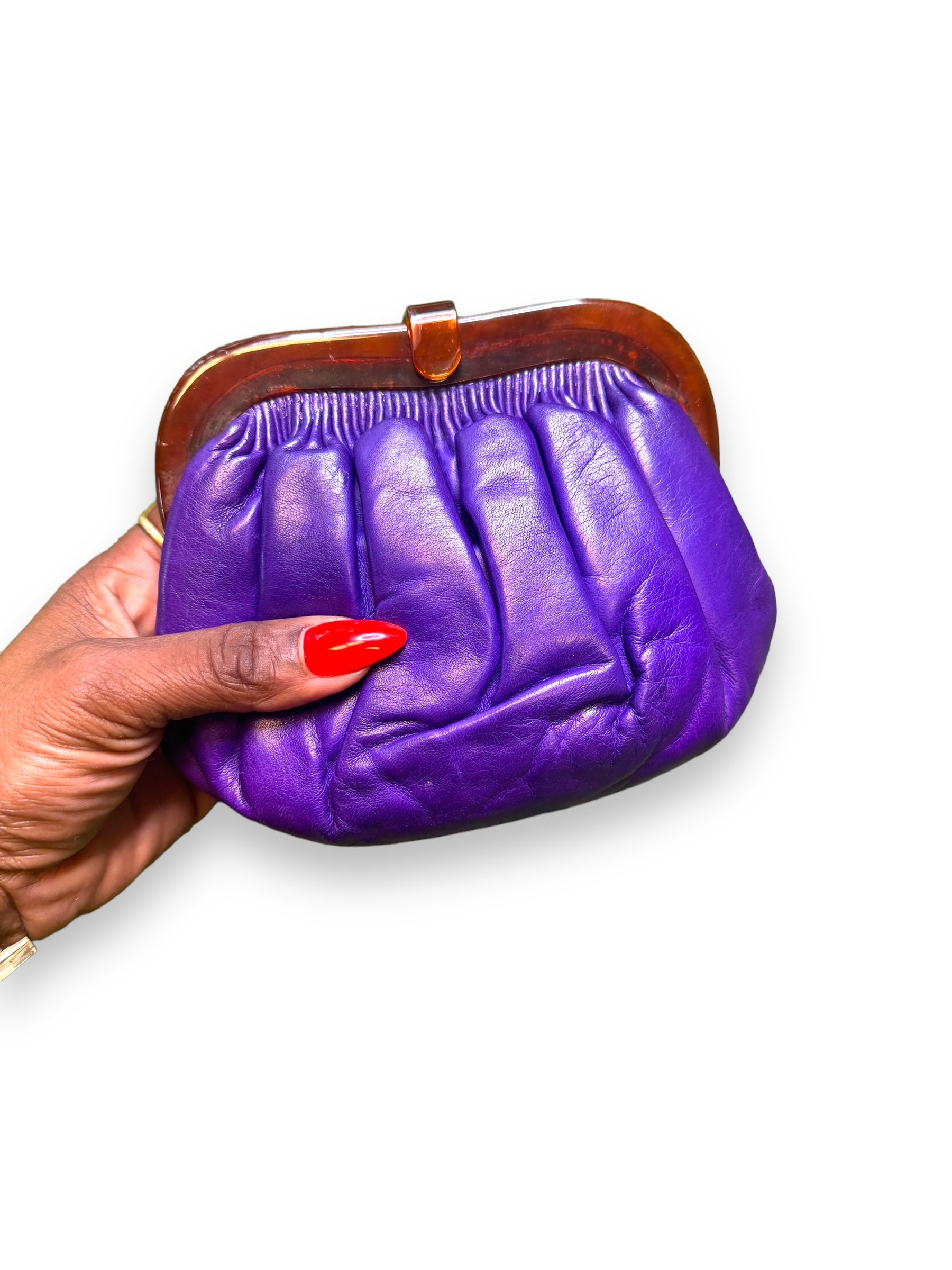 1970s Gucci Purple Calfskin Kiss Lock Clutch