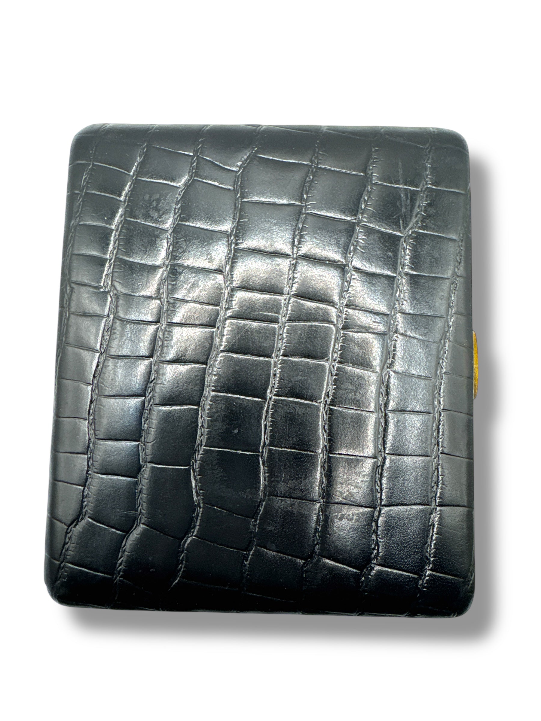 Add a touch of vintage sophistication to your accessory collection with our 1970s leather embossed cigarette case. Its chic style and cool vibe will elevate any look. Stay stylish while keeping your cigarettes protected in this luxurious case.