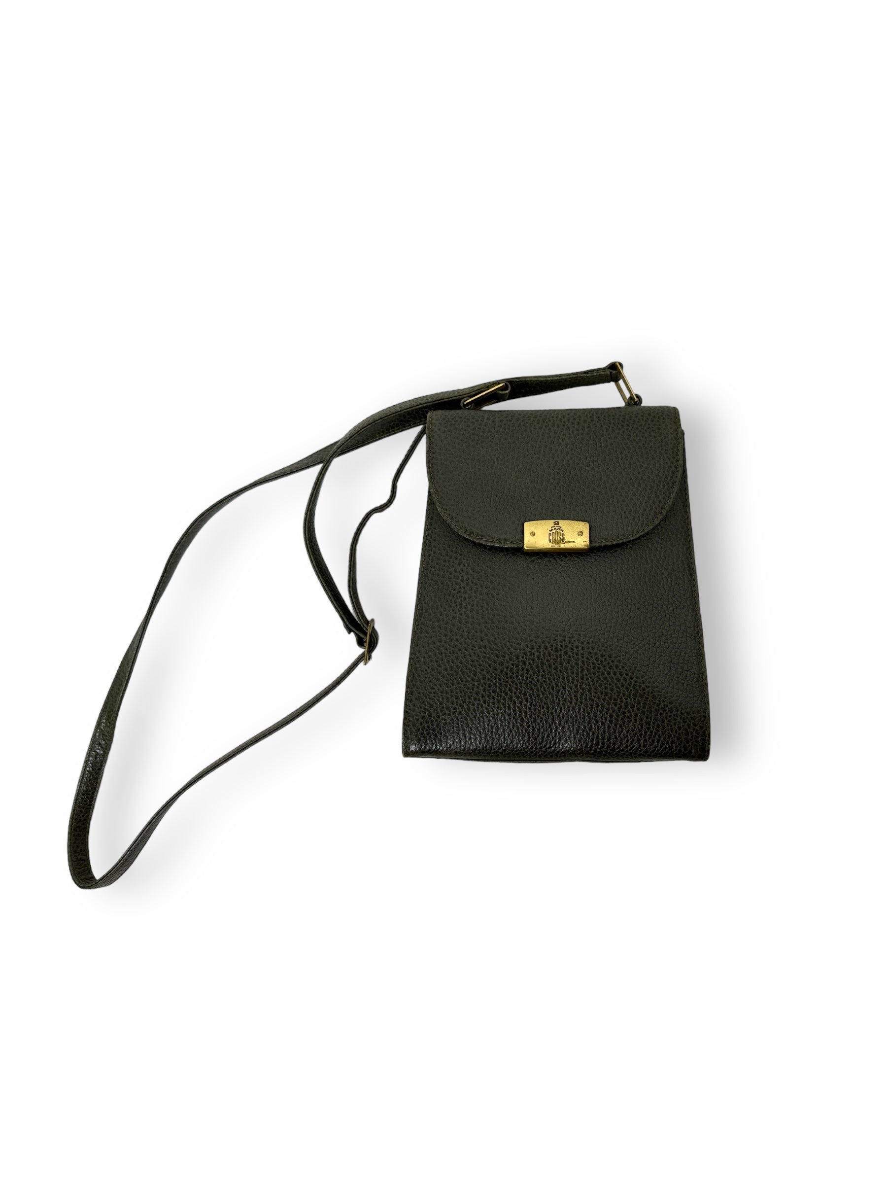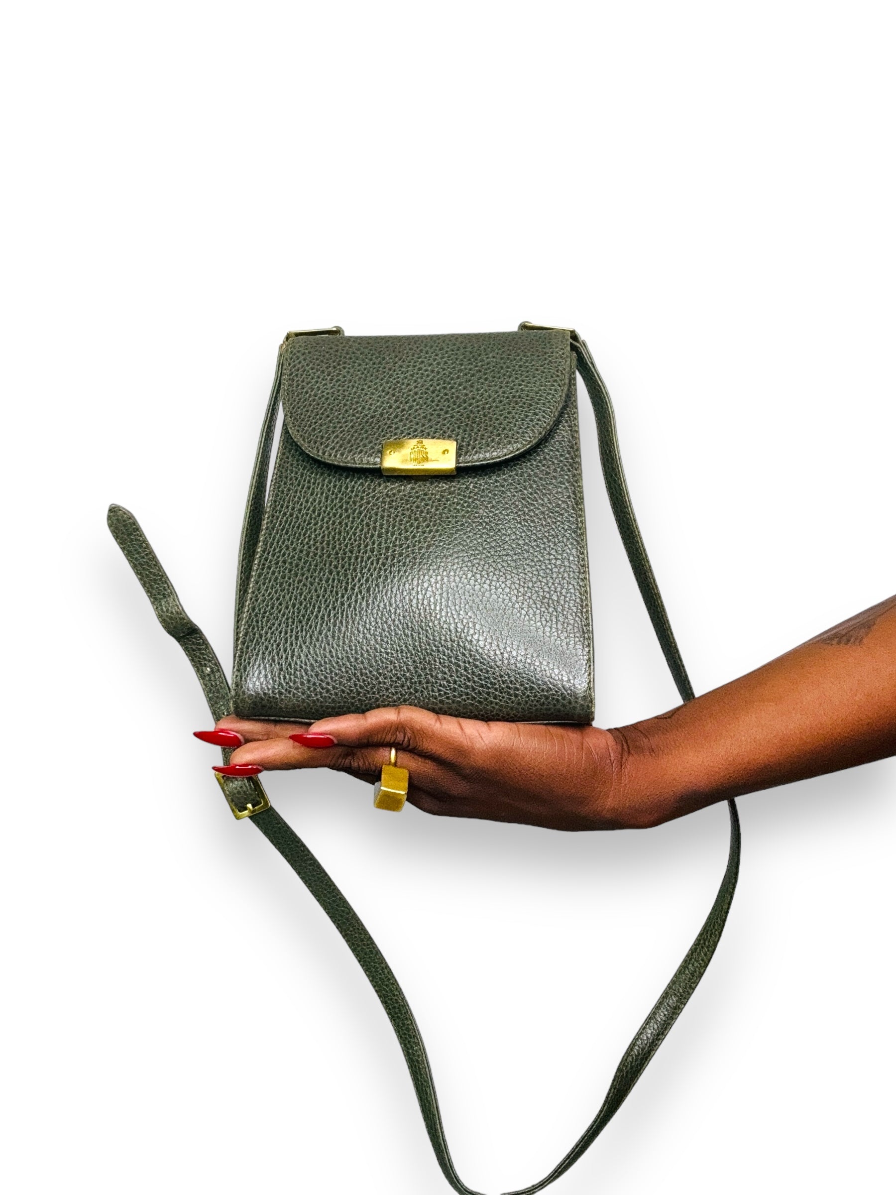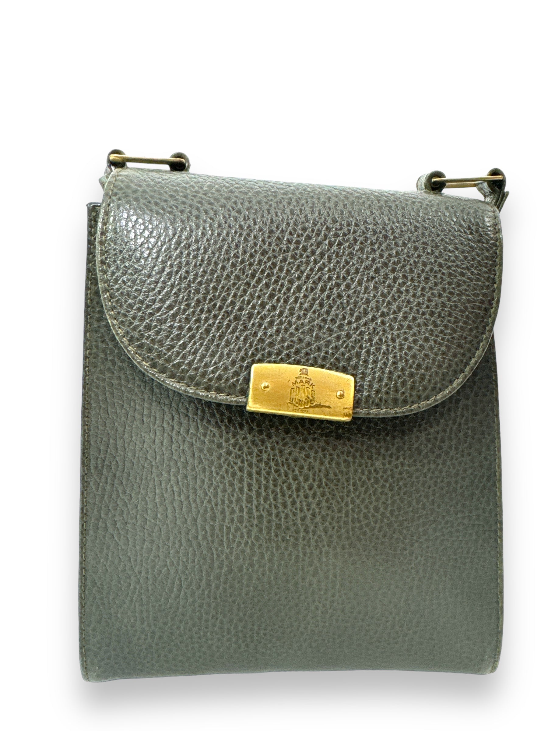 Go hands-free with this charming 1970s crossbody clutch from Mark Cross. With stylish gold hardware, it's perfect for a night out on the town or a casual day trip. The unique hunter green color adds a touch of vintage charm. (Sling it over your shoulder and make a statement!)
