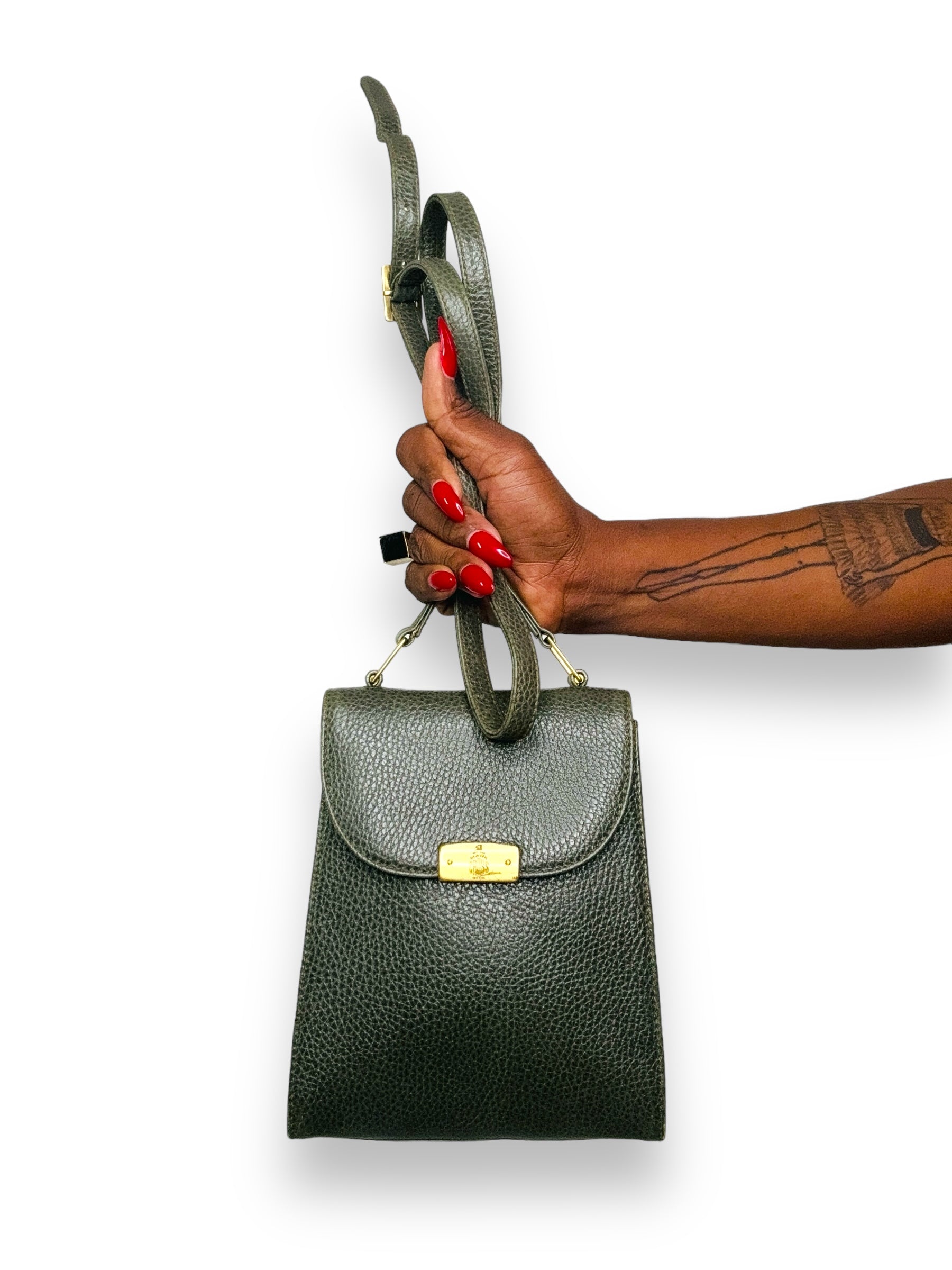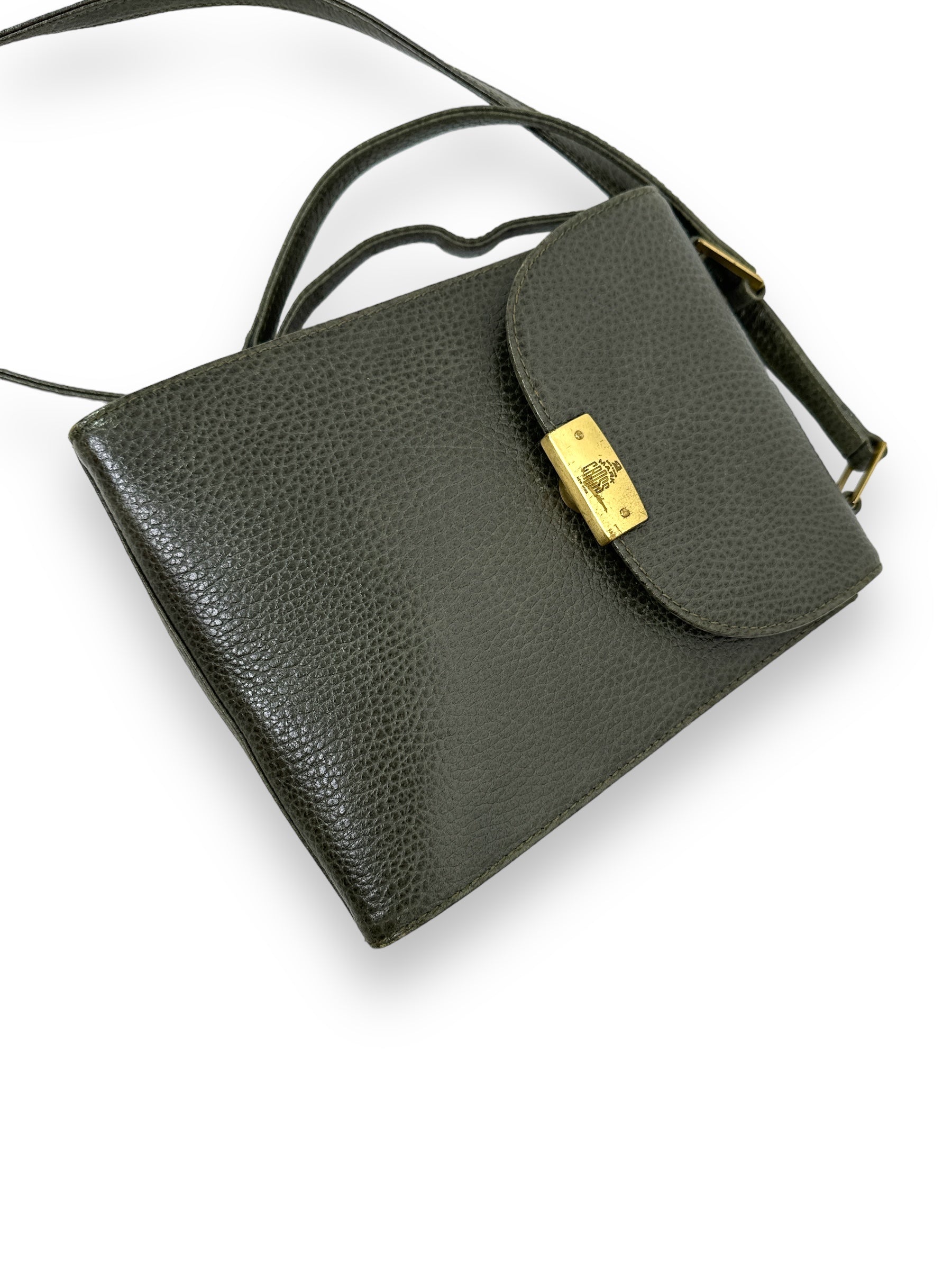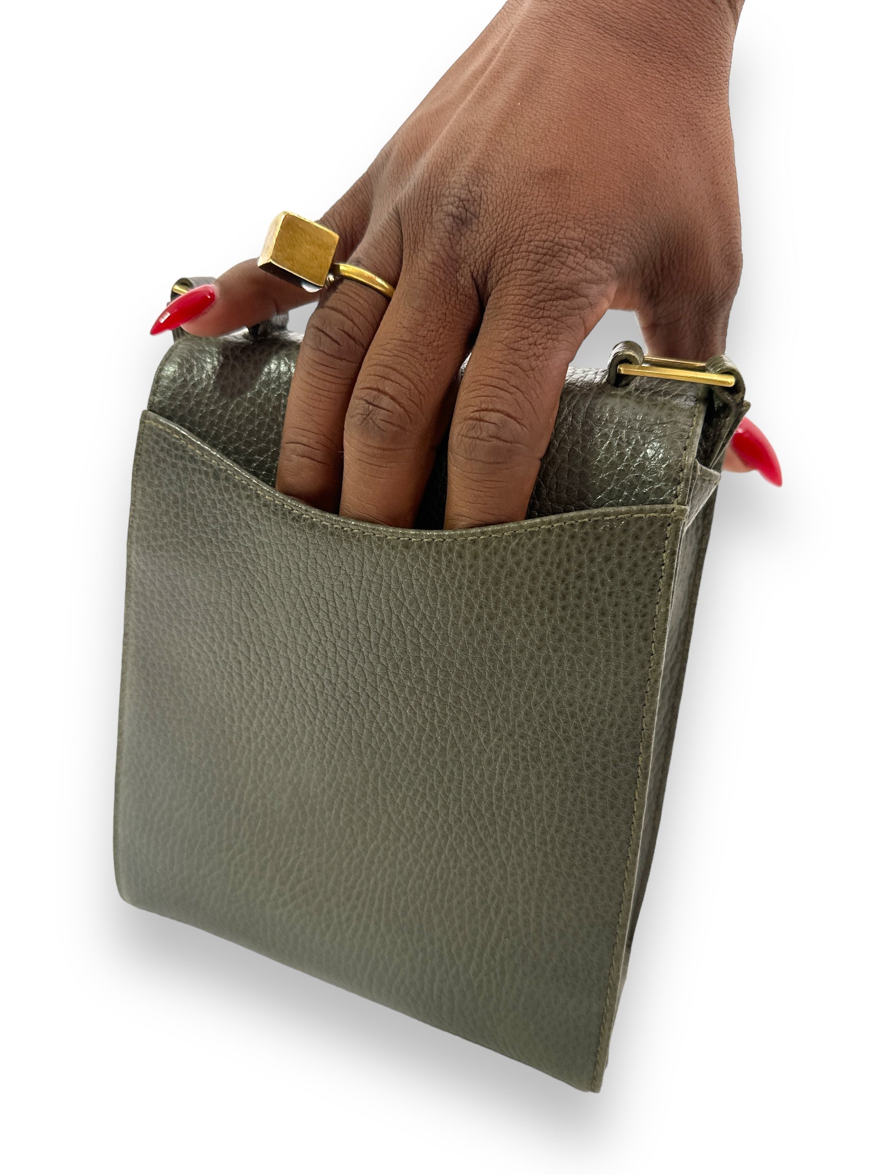 Go hands-free with this charming 1970s crossbody clutch from Mark Cross. With stylish gold hardware, it's perfect for a night out on the town or a casual day trip. The unique hunter green color adds a touch of vintage charm. (Sling it over your shoulder and make a statement!)
