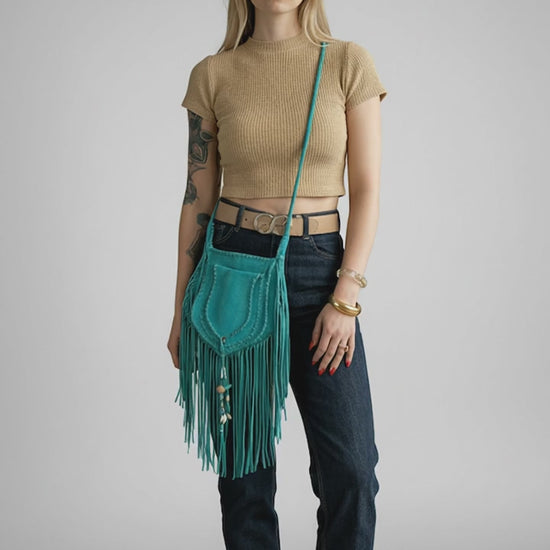1970s Turquoise Fringe Crossbody – Bohemian Leather Festival Bag