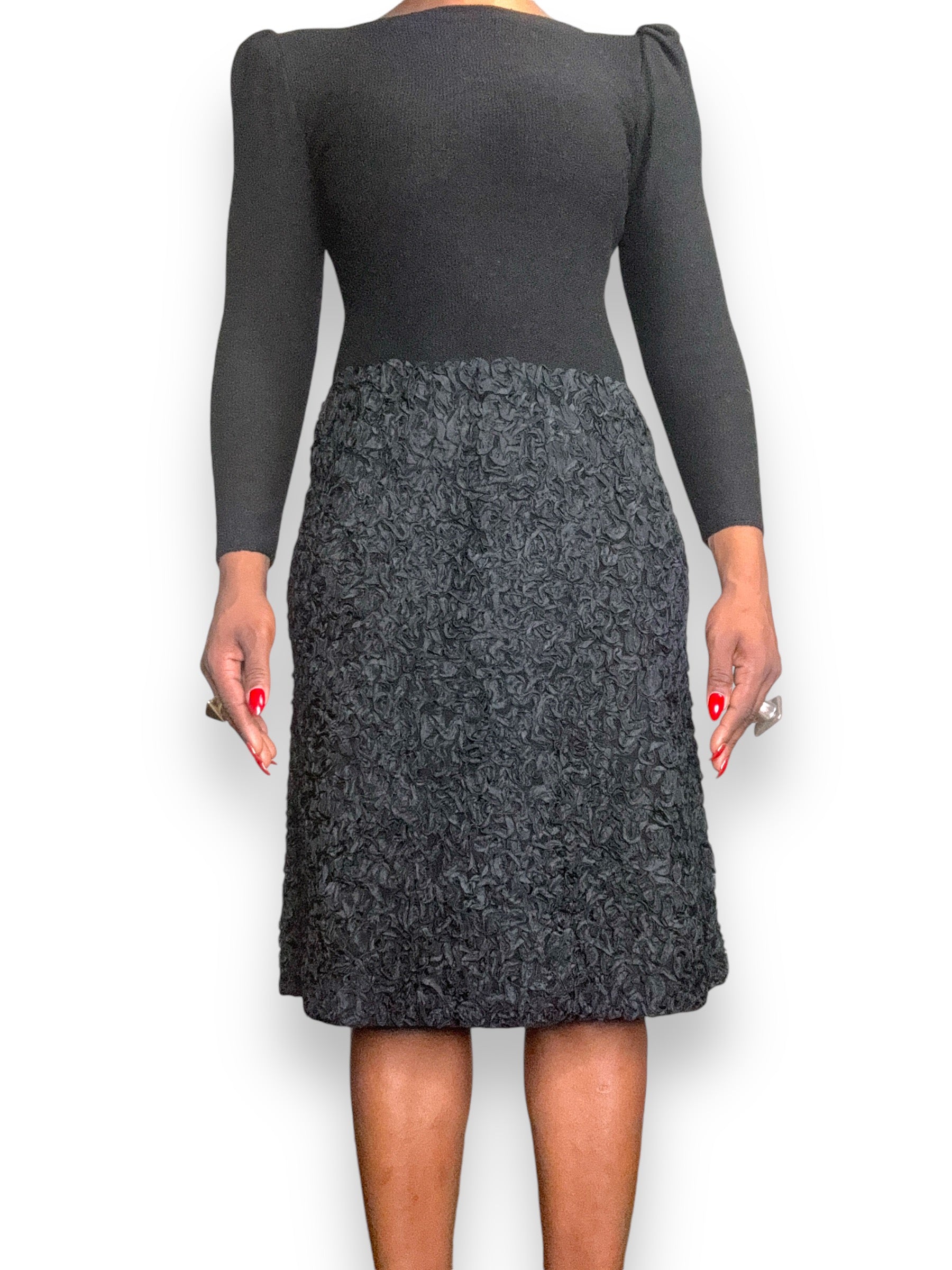 Introducing the perfect wardrobe staple - the 1970s Adolfo Saks Fifth Avenue dress. With its chic and sexy design, featuring princess sleeves, this little black dress is a must-have for any fashion lover. Say goodbye to boring outfits and hello to effortless style!