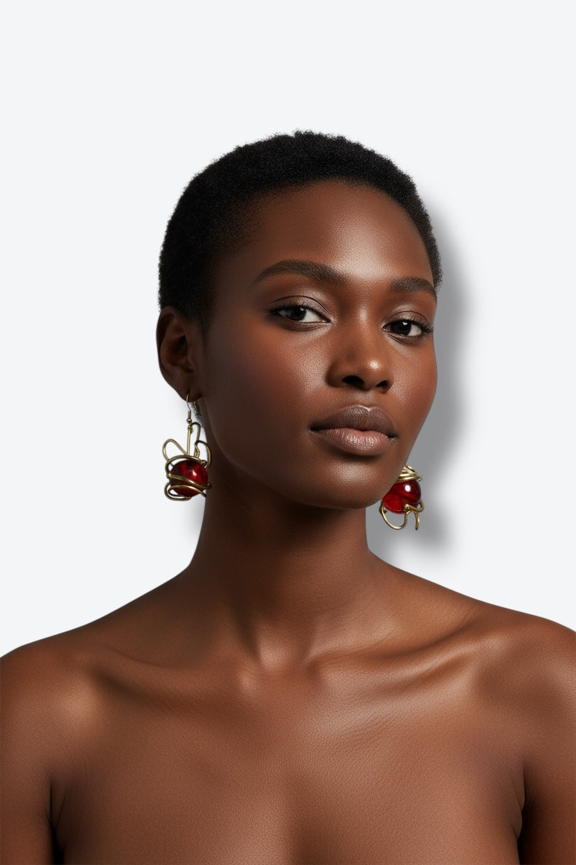 1980s Artisan Red Orb Wire Sculpted Earrings