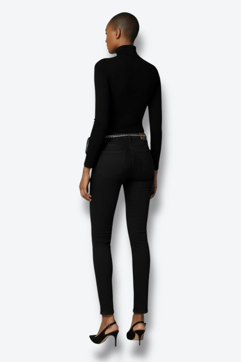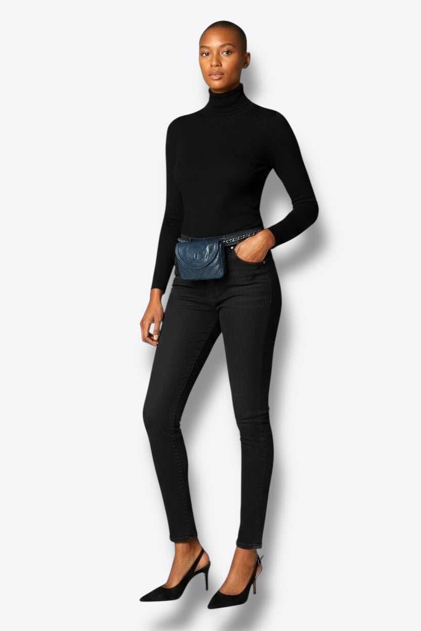 An iconic piece from Chanel’s 1990s accessories line, this belt bag is crafted in supple black lambskin leather with the signature stitched CC logo on the flap. The adjustable belt features the house’s classic gold-tone chain interwoven with leather, combining elegance with hands-free practicality. A collector’s item that embodies Chanel’s blend of functionality and luxury.