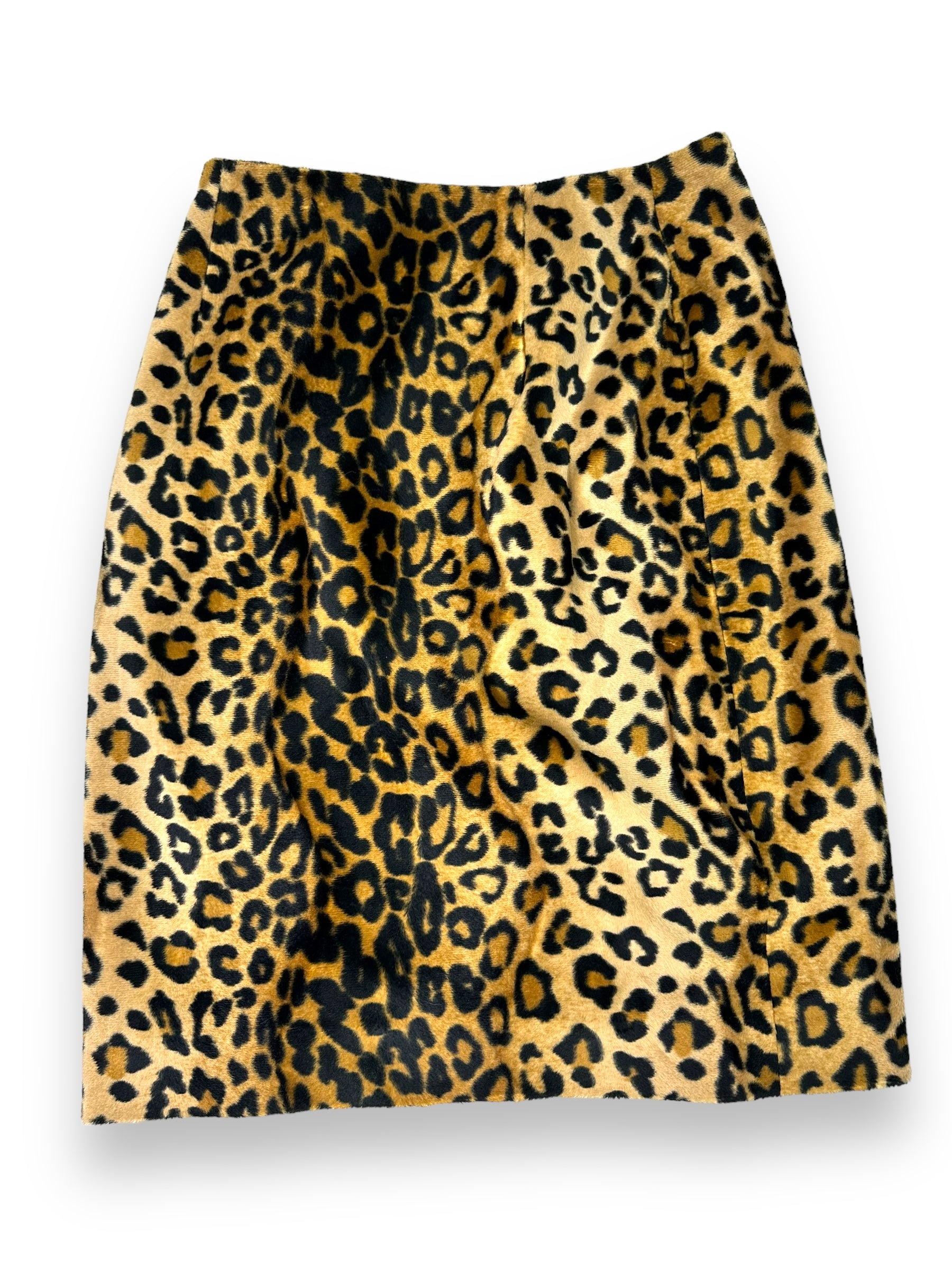 Upgrade your wardrobe with the retro-chic style of the 1990s Rena Rowan Faux Fur Skirt. This cool and awesome pencil skirt features a trendy cheetah print, perfect for adding a touch of personality to any outfit. Don't miss out on this stylish and unique addition to your collection.