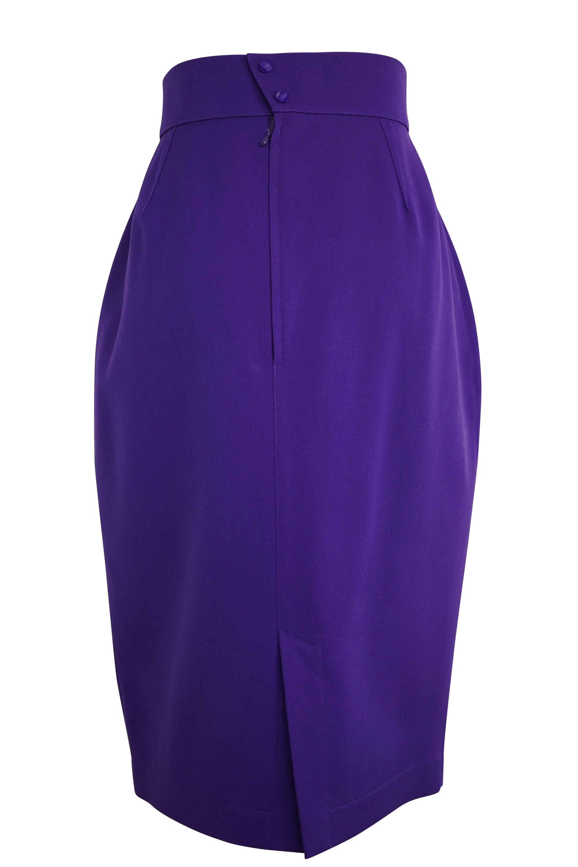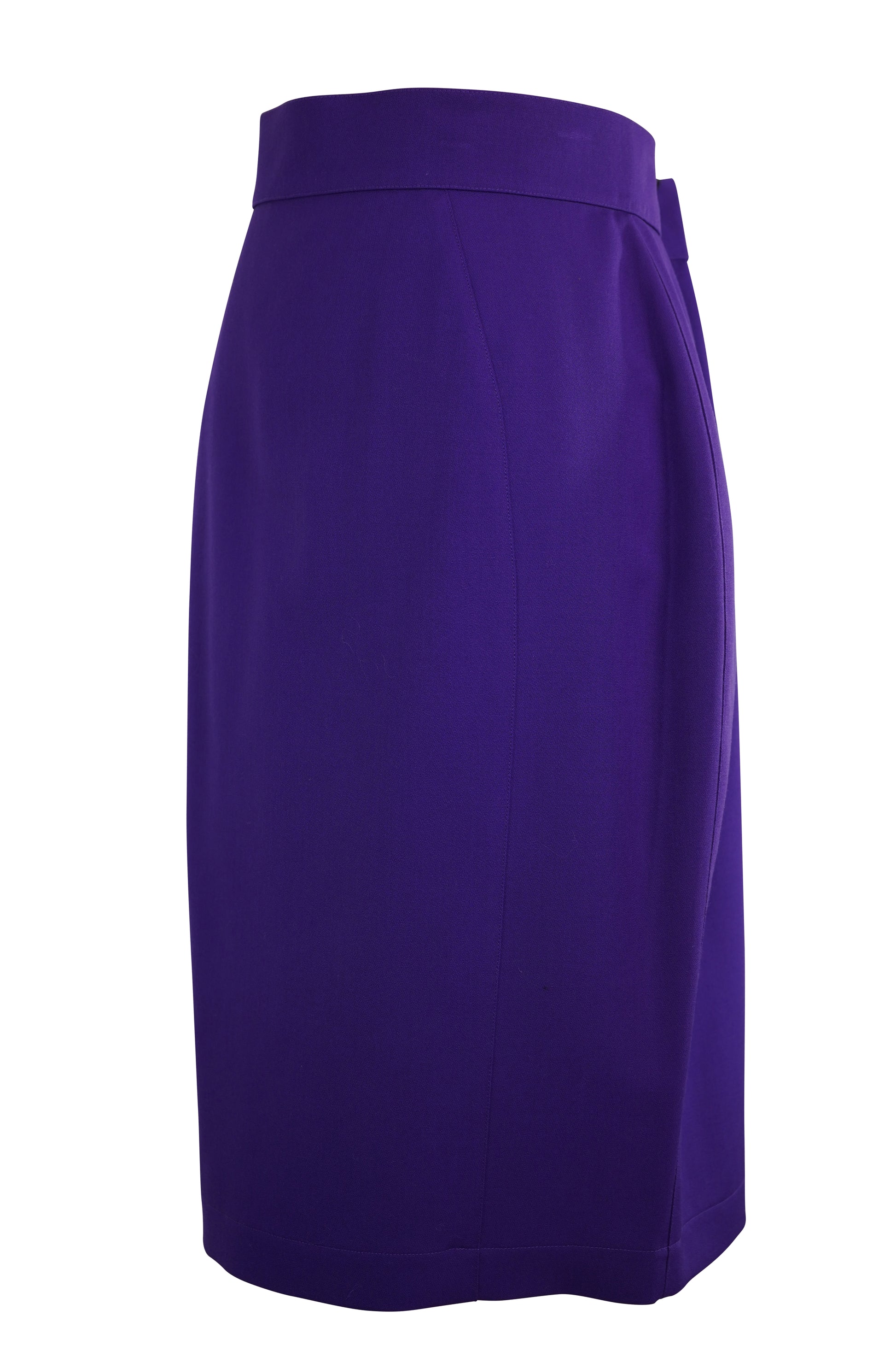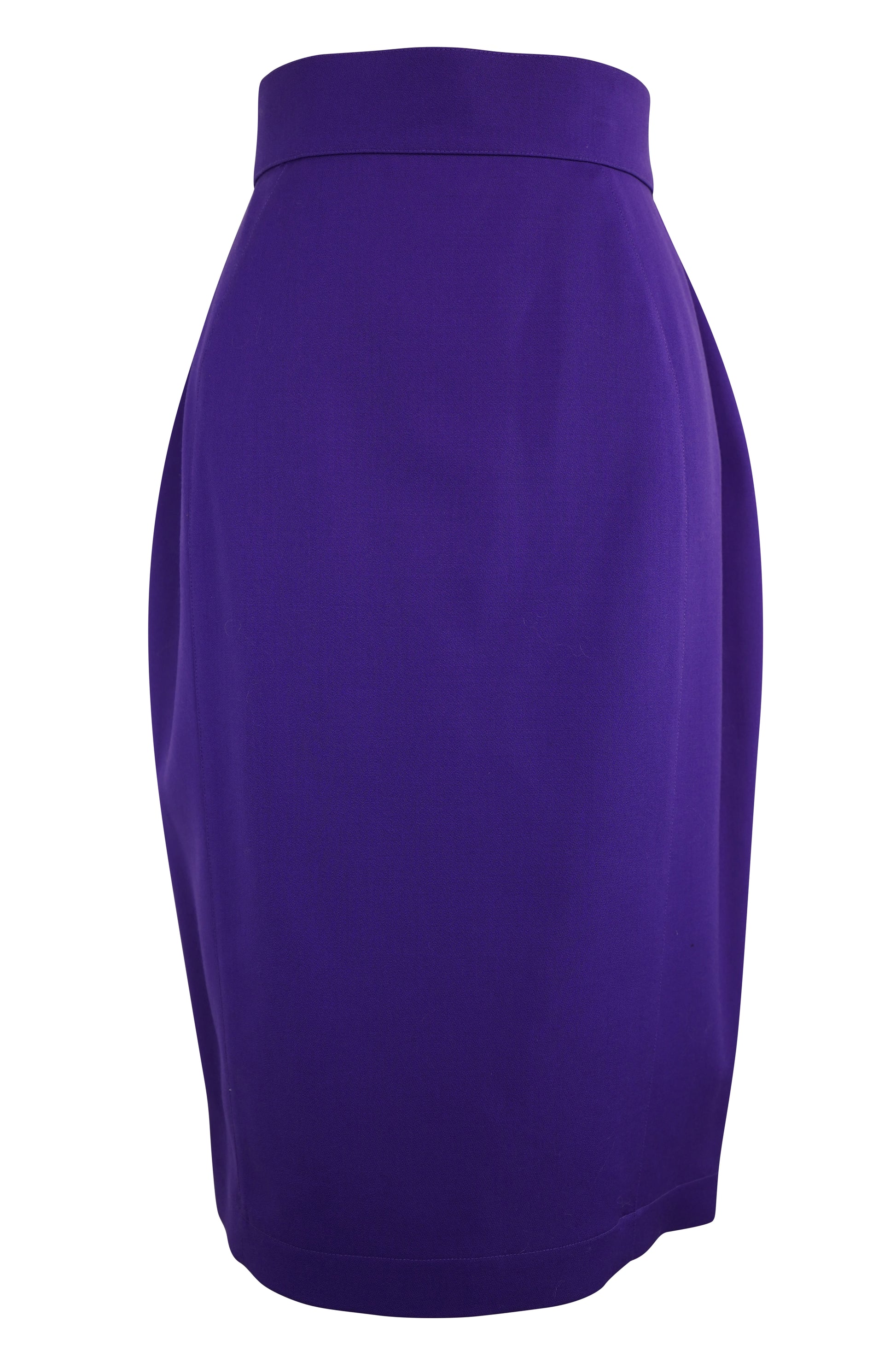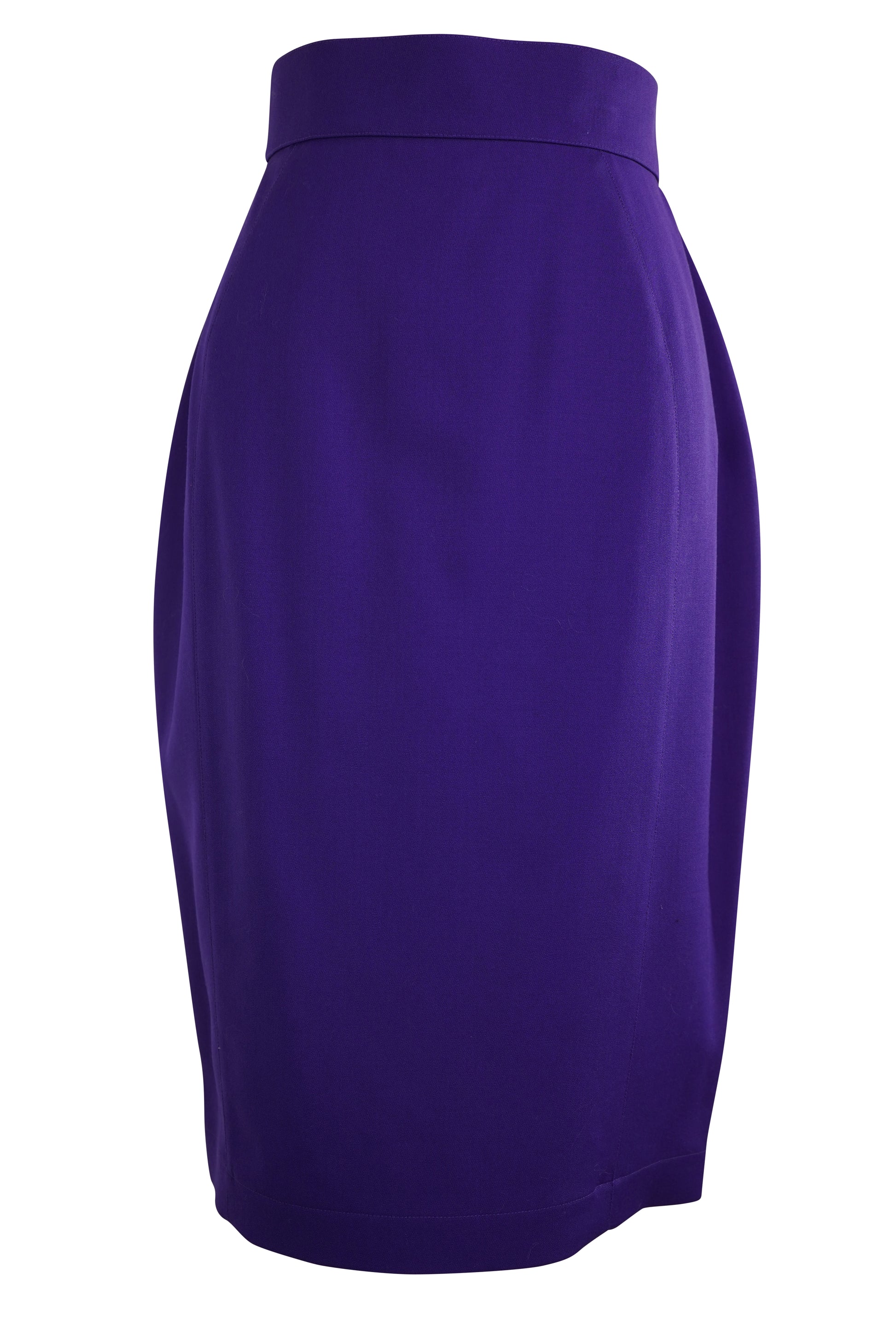 This stunning 1990s Thierry Mugler skirt exudes avant garde luxury. Crafted with a vibrant purple hue and unique details, it radiates classic elegance and a hint of bold sophistication. An exceptional piece of timeless fashion.