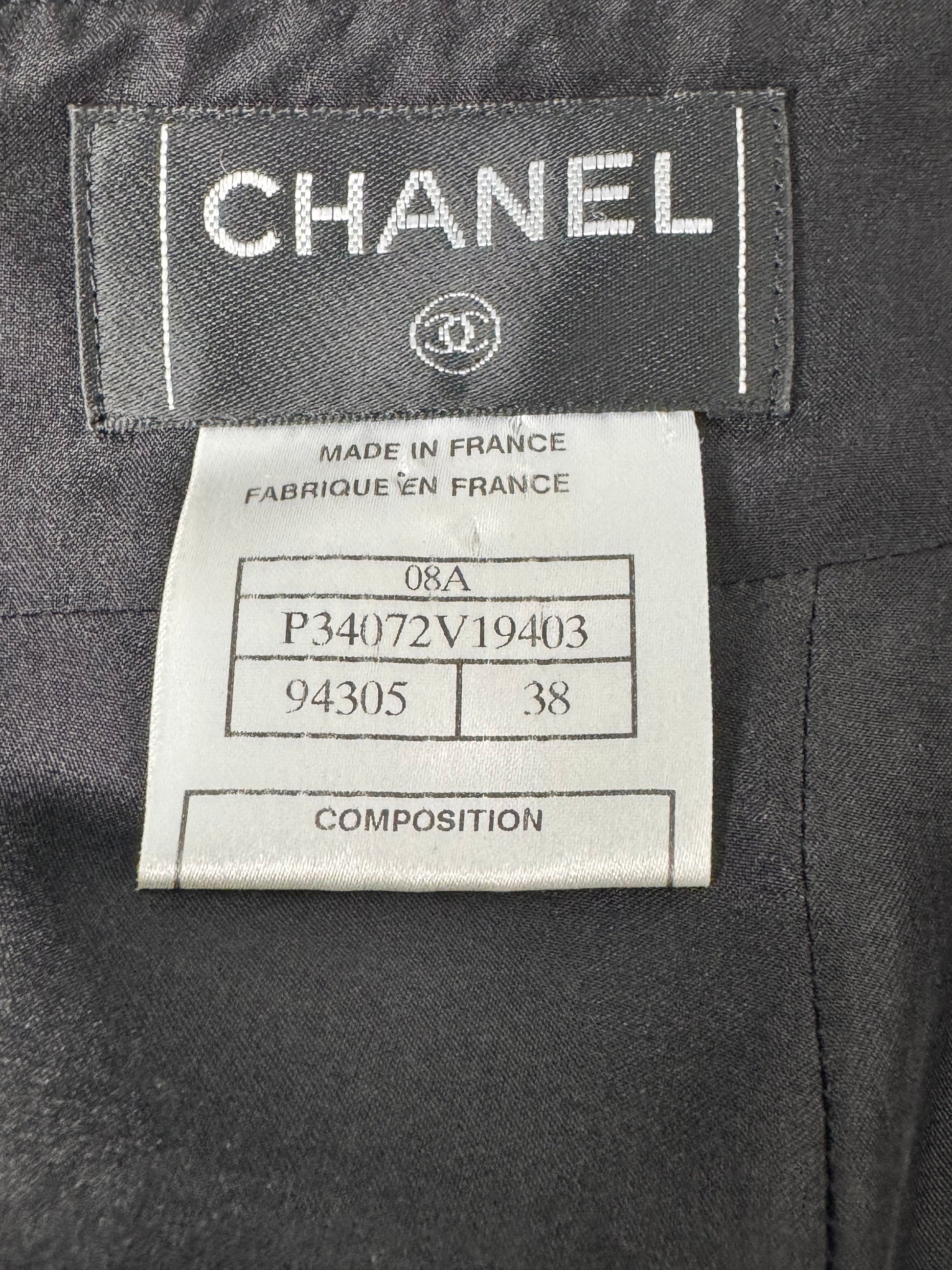 From the Chanel Fall/Winter 2008 collection, this elegant black skirt embodies the house’s timeless Parisian sophistication. Tailored in France, it features a sleek silhouette crafted from luxurious silk with subtle detailing that reflects Chanel’s refined aesthetic. The versatile design makes it perfect for day-to-night wear—pair it with a silk blouse for a polished office look or a fitted blazer and heels for evening elegance.