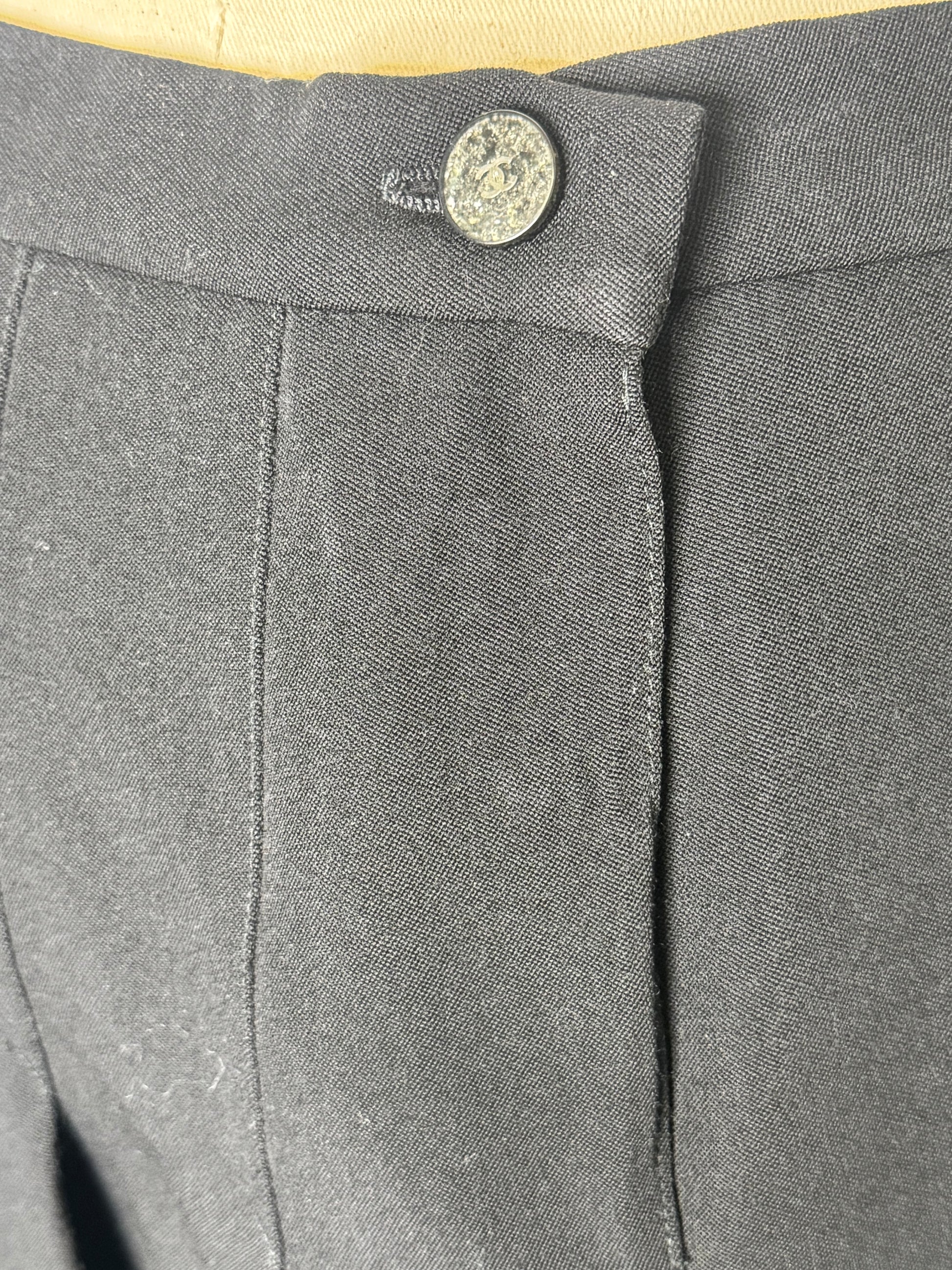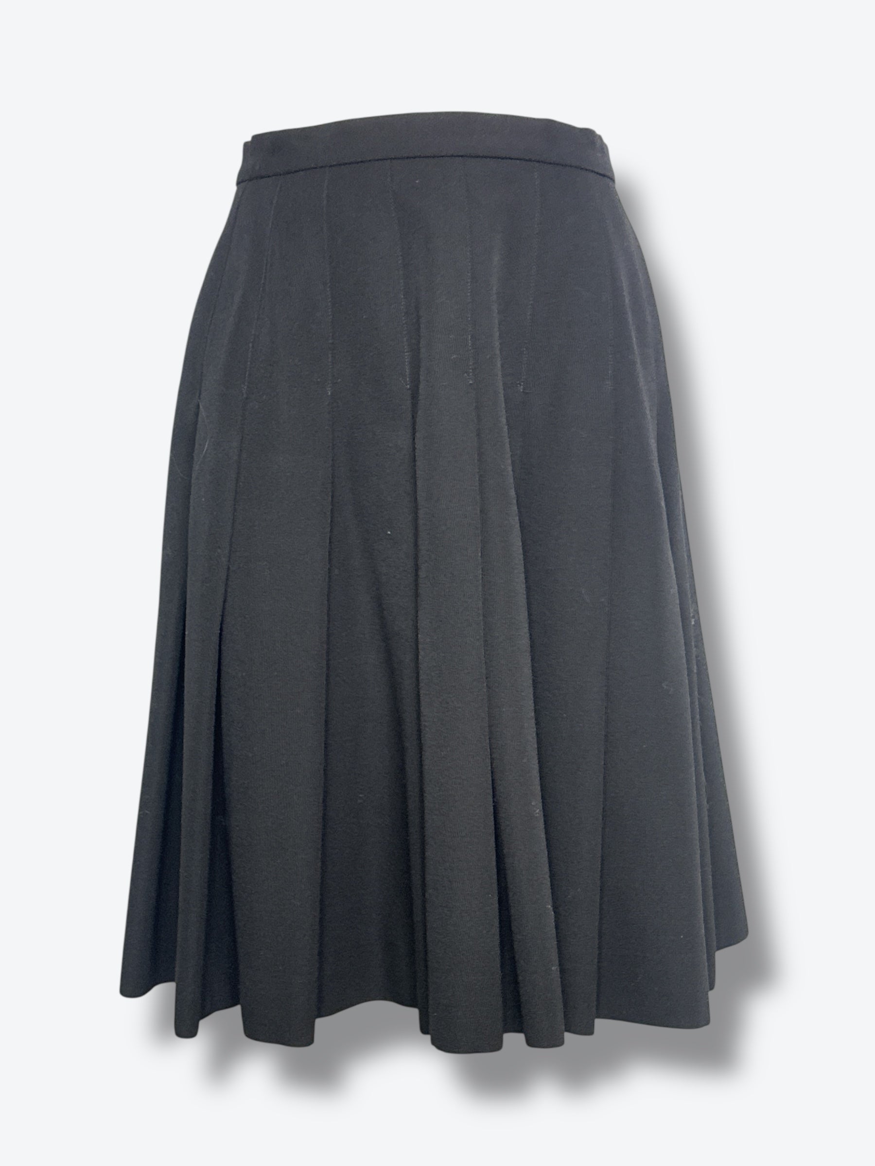This vintage Chanel black pleated skirt embodies the house’s signature refinement and timeless elegance. Cut in a flattering A-line silhouette, the skirt features soft pleats that add graceful movement while maintaining a structured, tailored shape. The minimalist design allows the craftsmanship to shine, making it a versatile piece that can be styled season after season. A true wardrobe investment, this skirt reflects Chanel’s philosophy of effortless sophistic