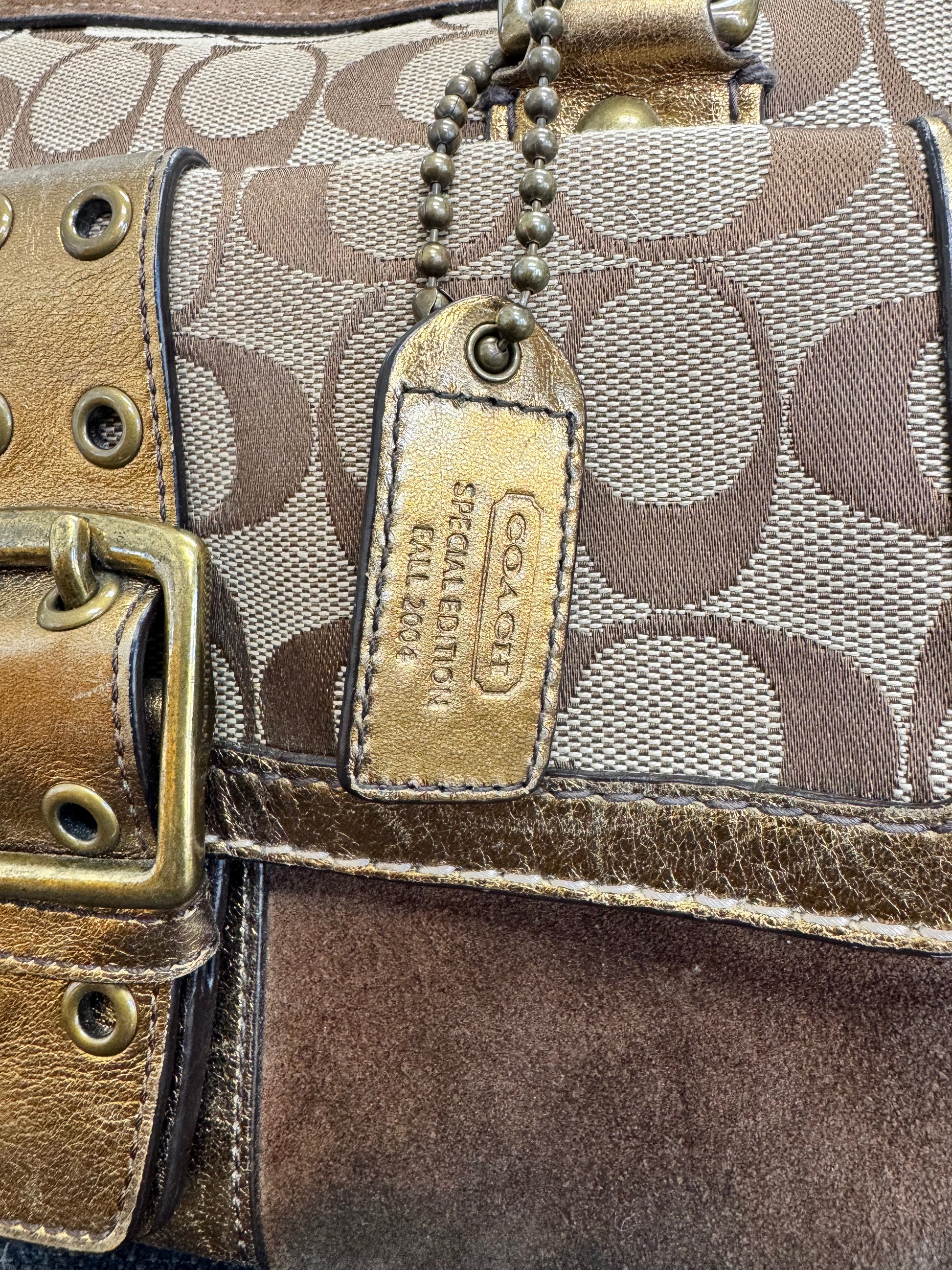 Indulge in luxury with our Fall 2004 Limited Edition Coach Speedy. This chic Coach duffle is both awesome and easy to wear, making it the perfect statement piece of the season. Elevate your style with this exclusive and timeless bag.