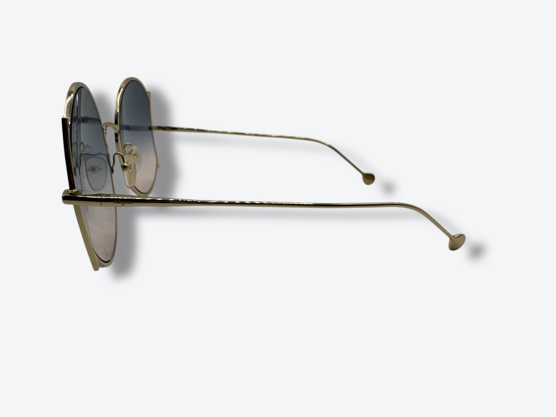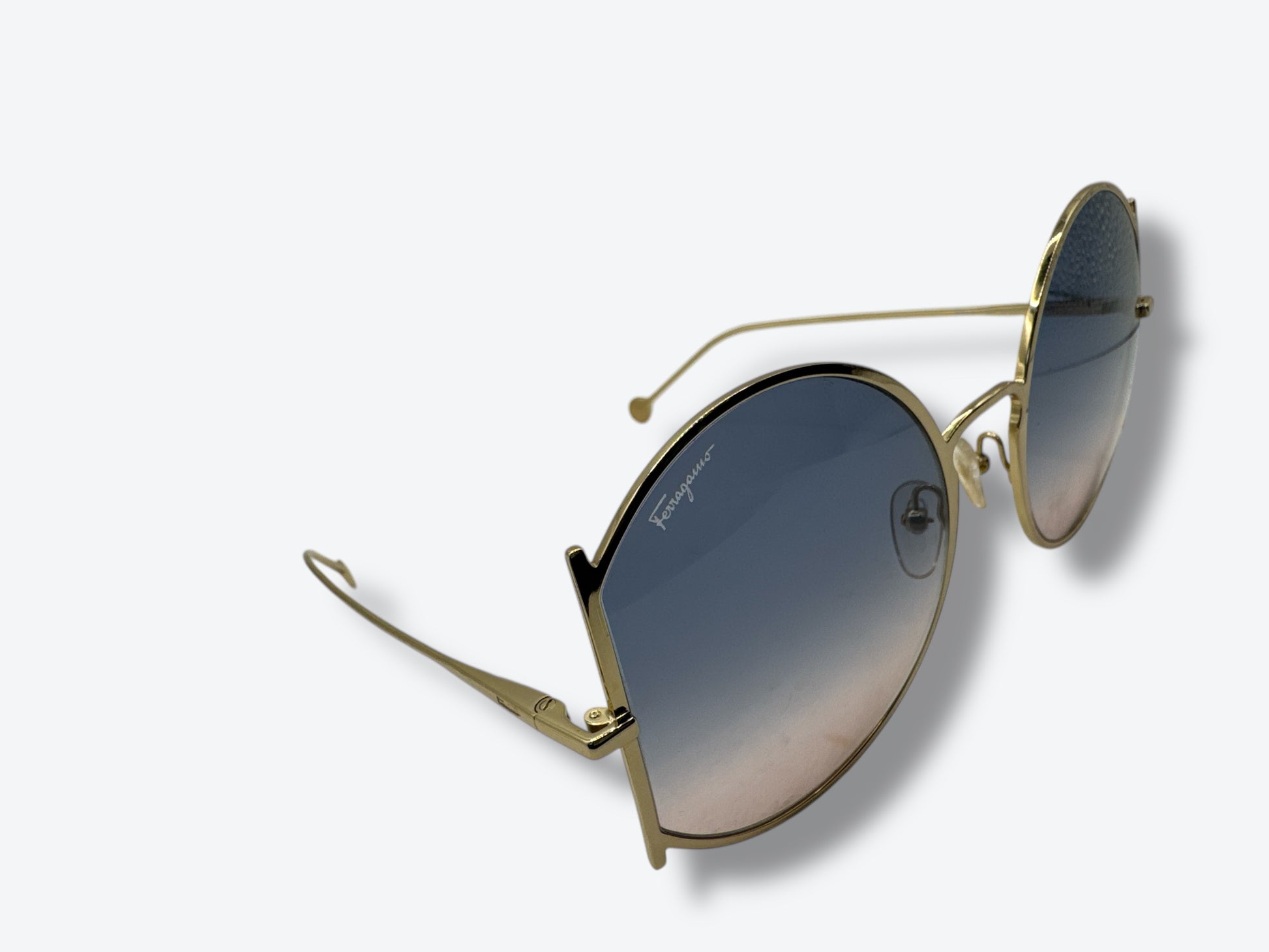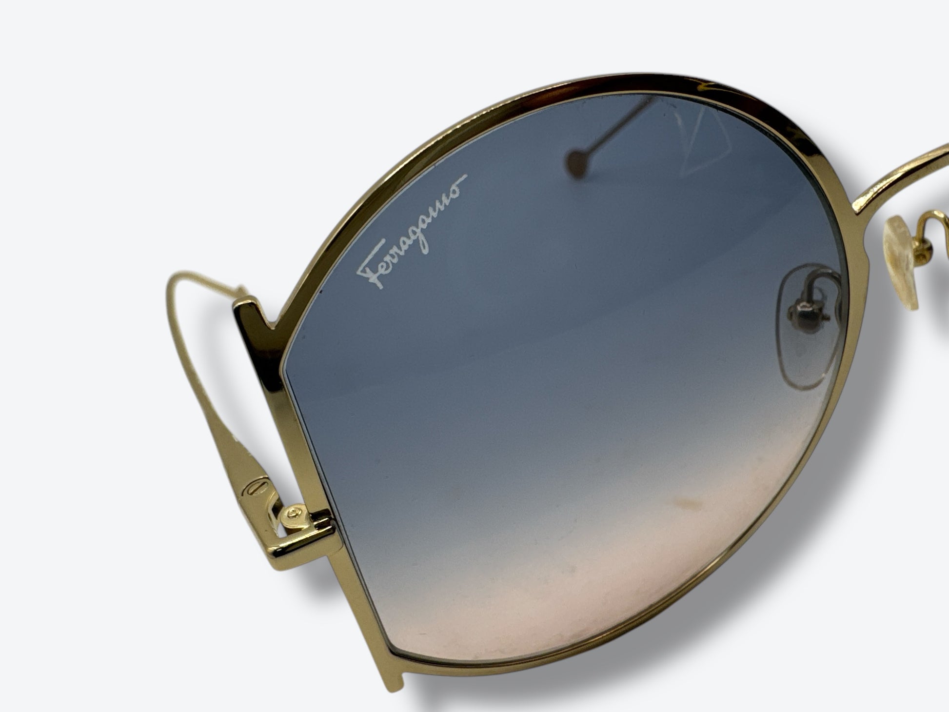 Embrace the ombré trend with these cool sunnies! With stylish gold frames and chic purple and pink lenses, they're perfect for adding a pop of color to any outfit. Be sure to snag a pair of these Ferragamo sunglasses before they're gone!