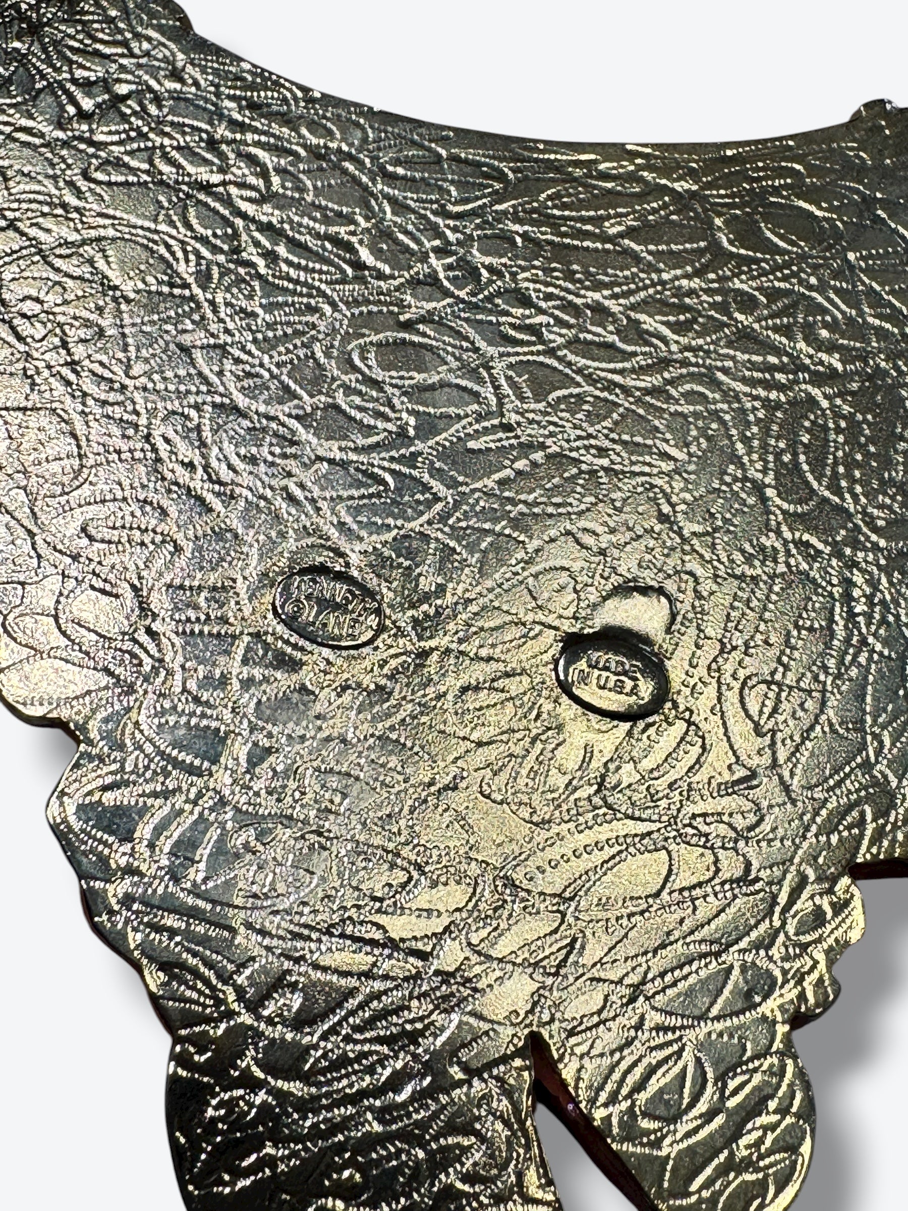 - Details: Textured gold-tone back, signed KJL (typical of authentic pieces from the era)
