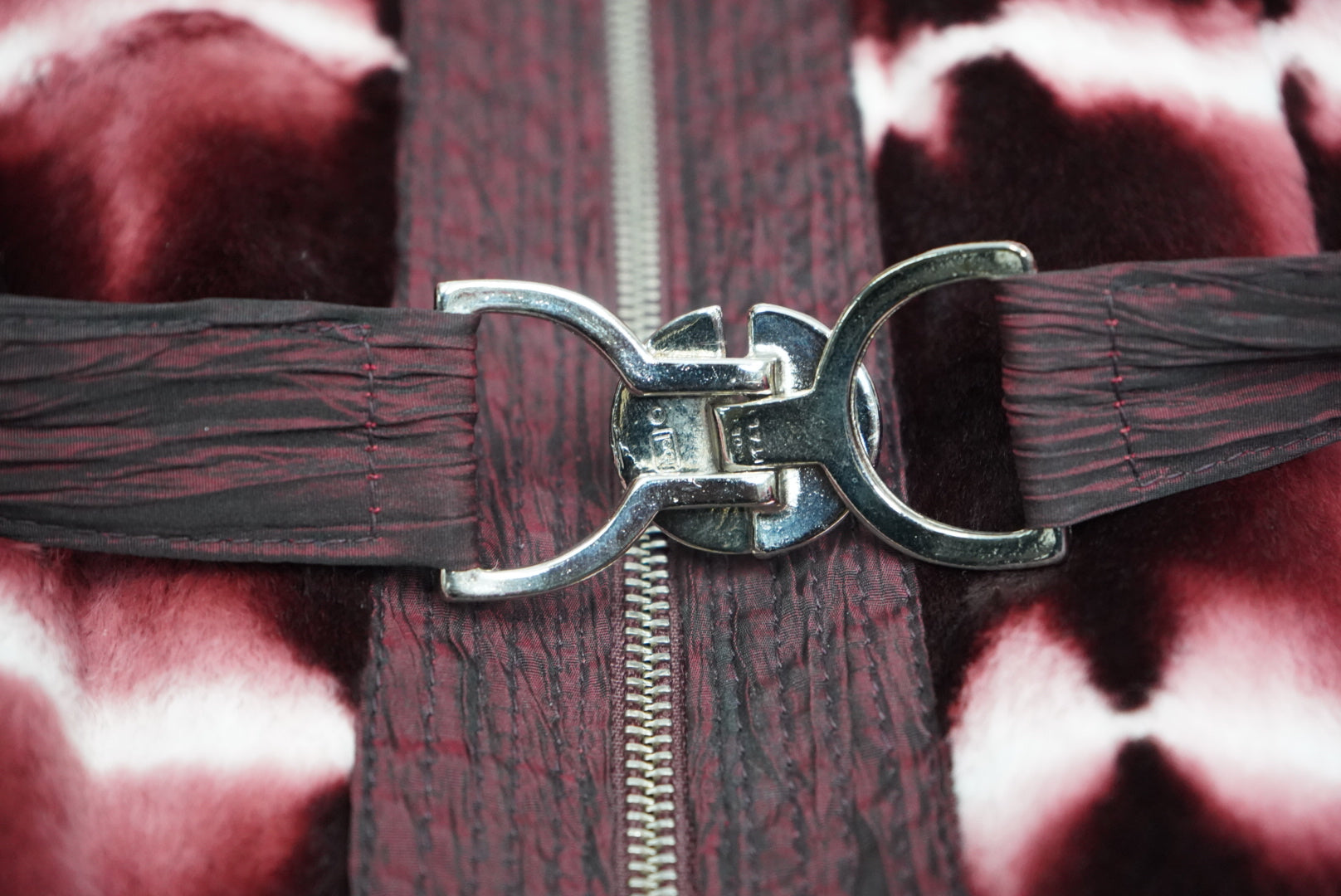 Marengo Reversible Crimson and White Fur and Raw Silk Ski Jacket