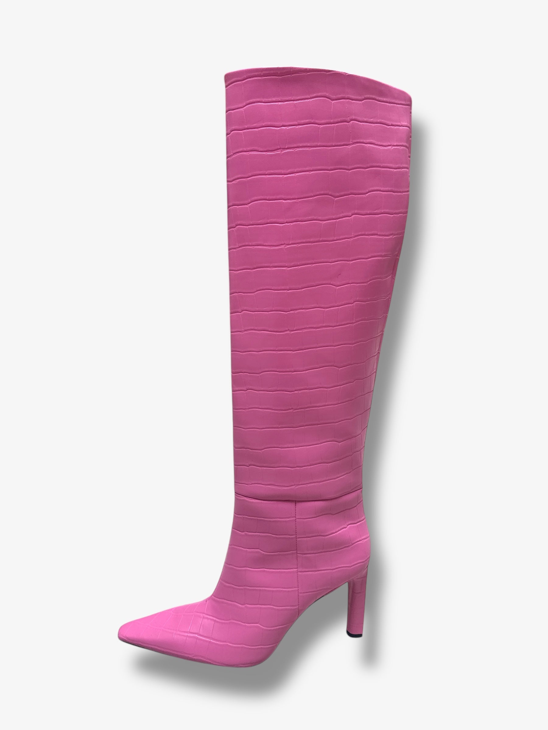Get ready to strut in style with our Hennes + Maurtiz Pink suede Faux Leather Boots. These cool boots feature embossed leather, giving you a unique and chic look. Perfect for any fashionista looking to make a statement.