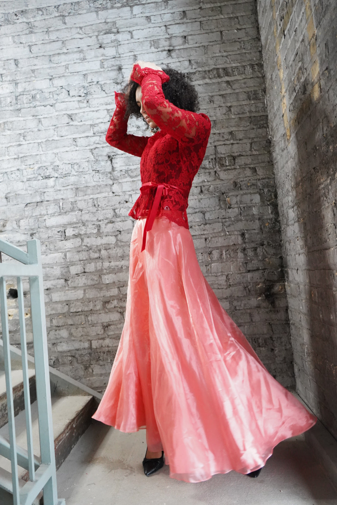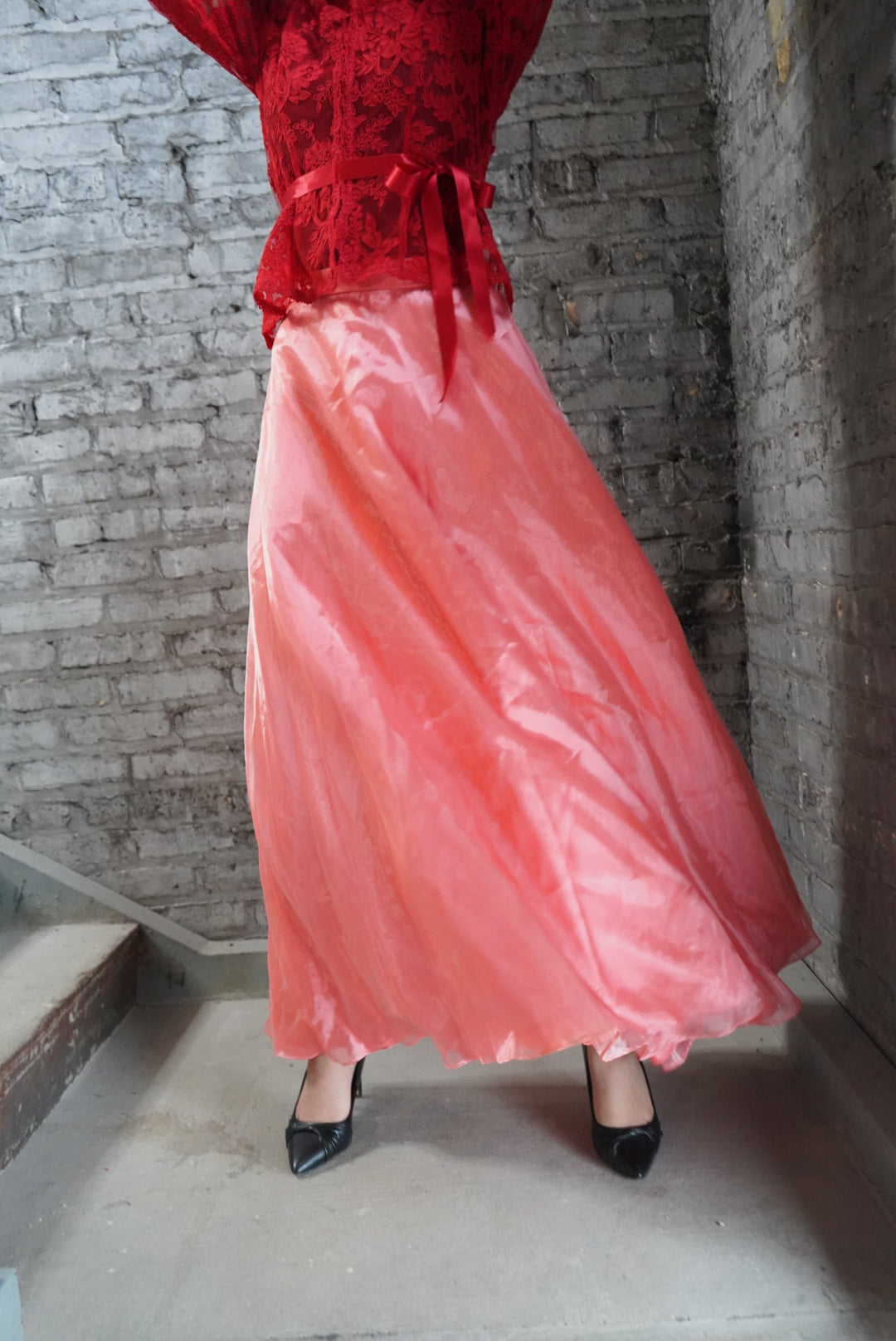 1990s Roberta Organza Peach Crinkle Circle Skirt