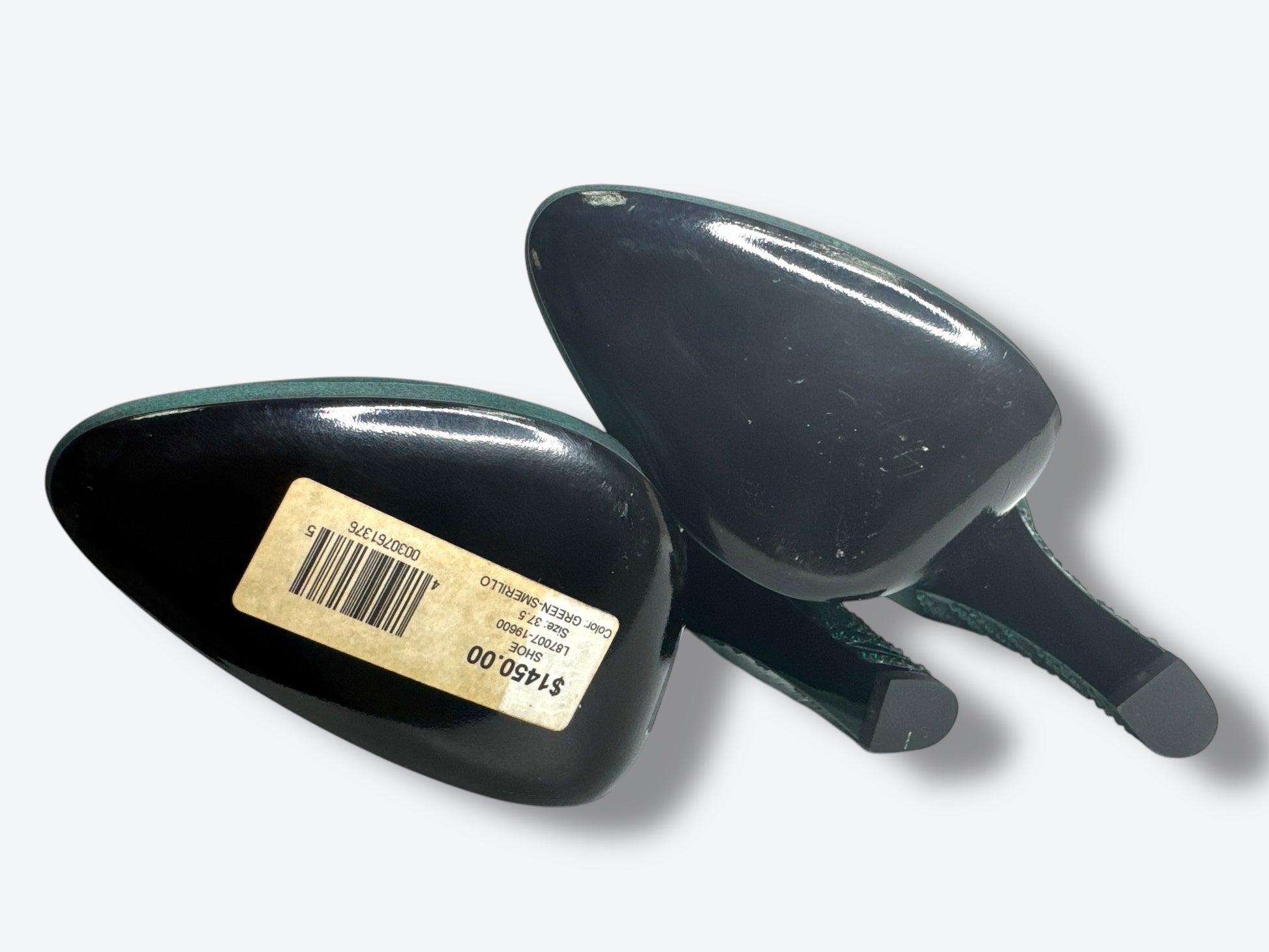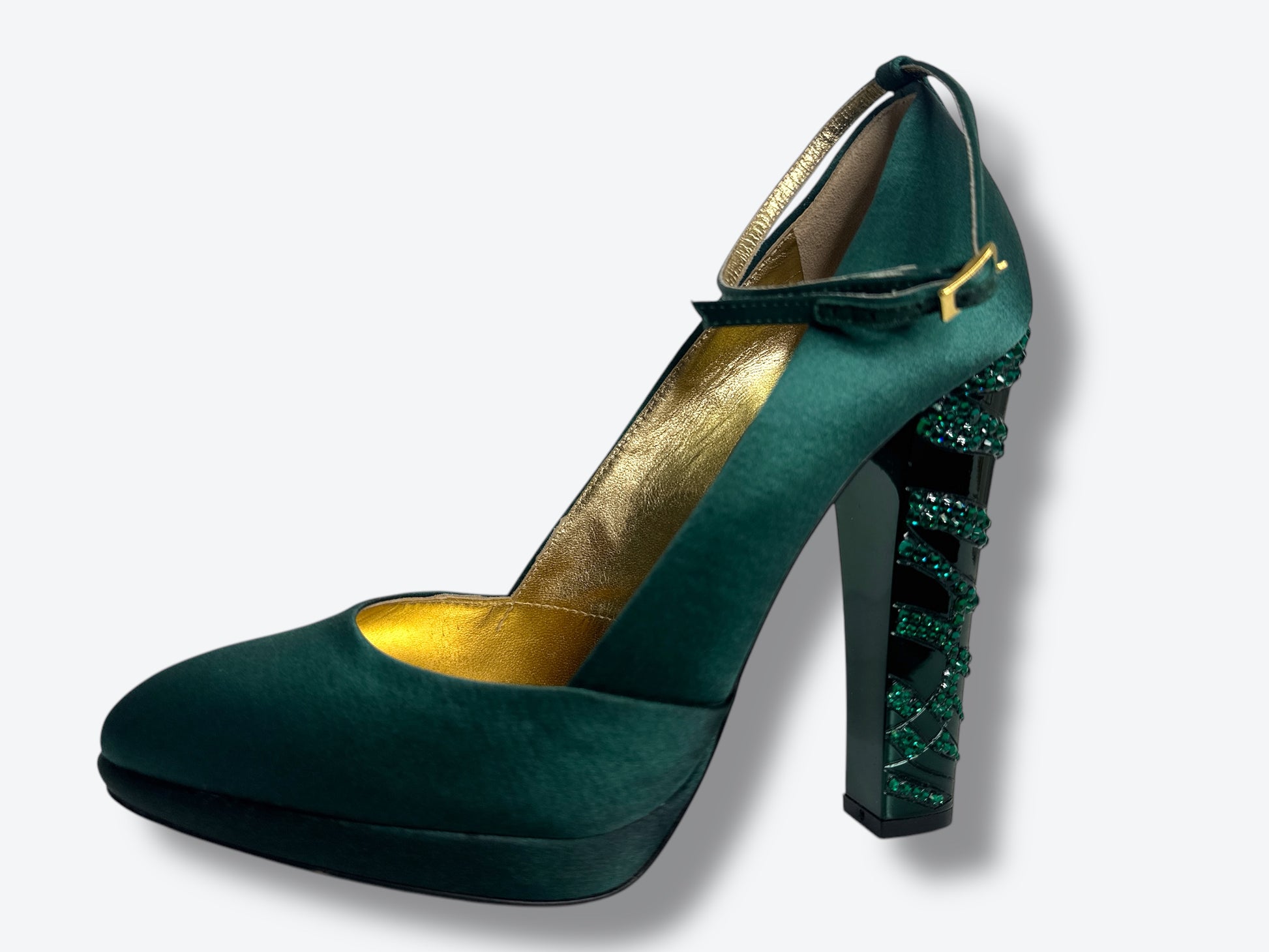 Elevate your style with Roberto Cavalli's striking Green Smerillo Gem Heel Platforms. The tall and sexy heels will make a statement while the strong platform provides all-day comfort. Stand out in luxurious, head-turning green.