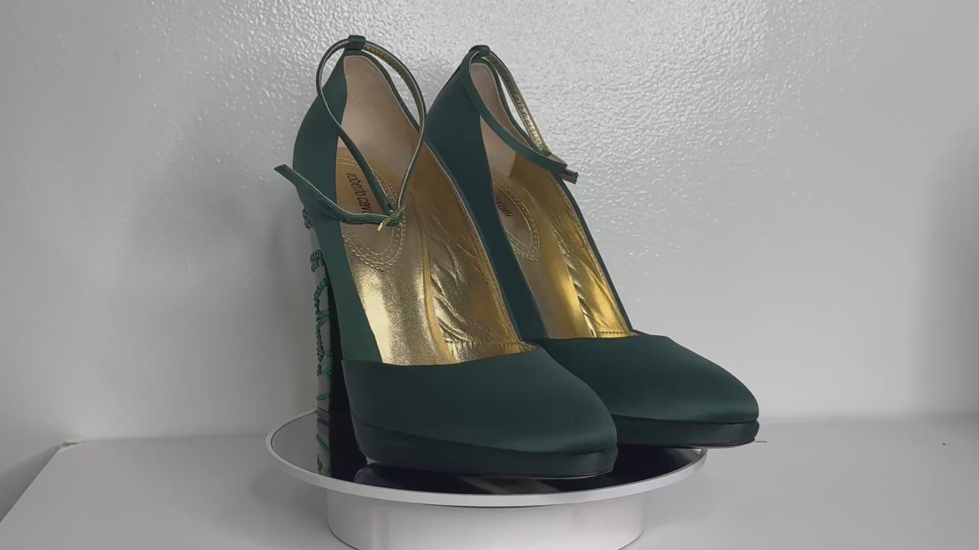 Roberto Cavalli Green Smerillo Gem Heel Platforms