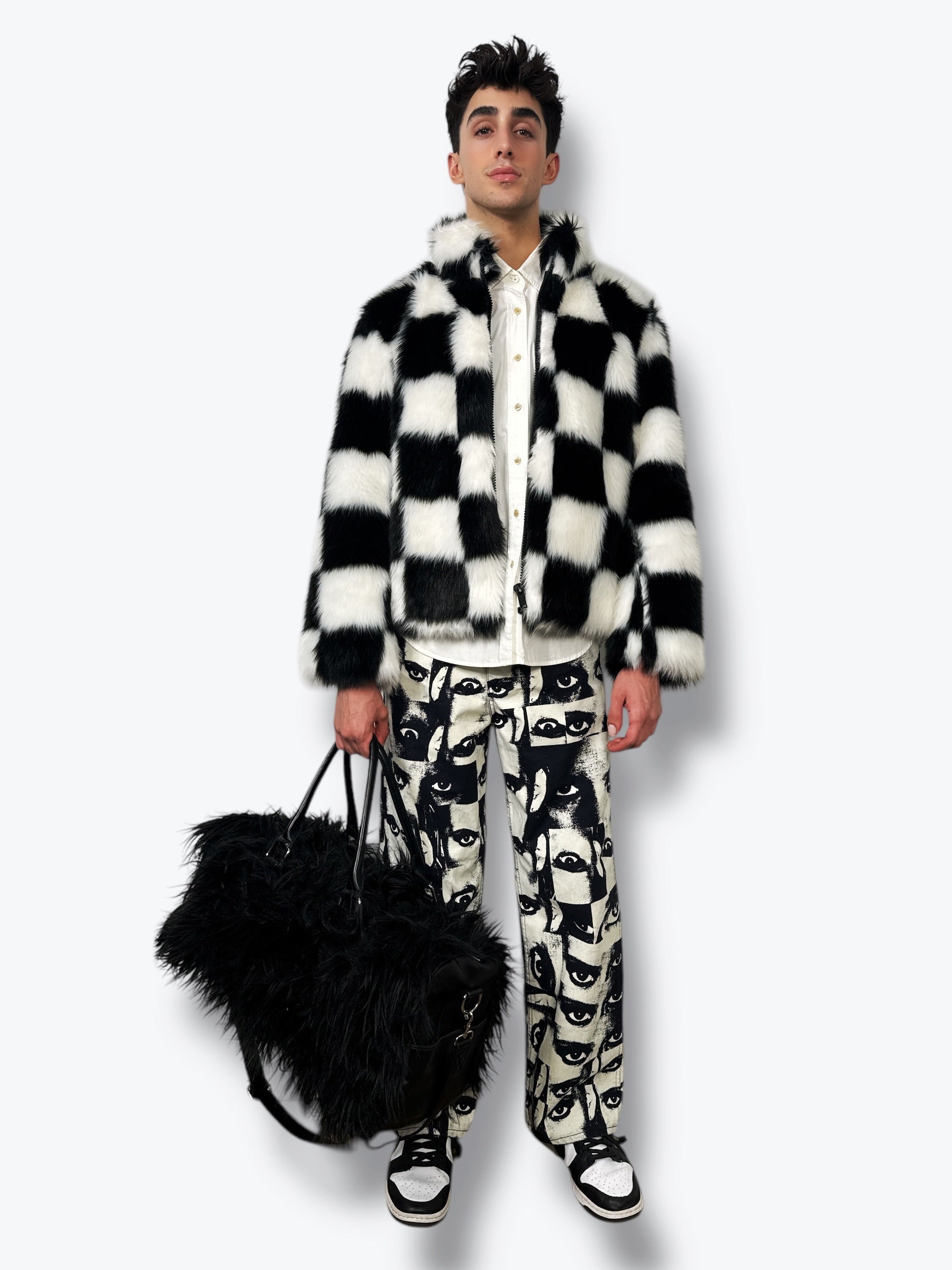 Current Mood Faux Fur Duffle bag is the perfect companion for any discerning fashionista. Crafted from super cool black faux fur, its chic avant garde design and superior quality make it a luxurious overnight bag that exudes sophistication and exclusivity.