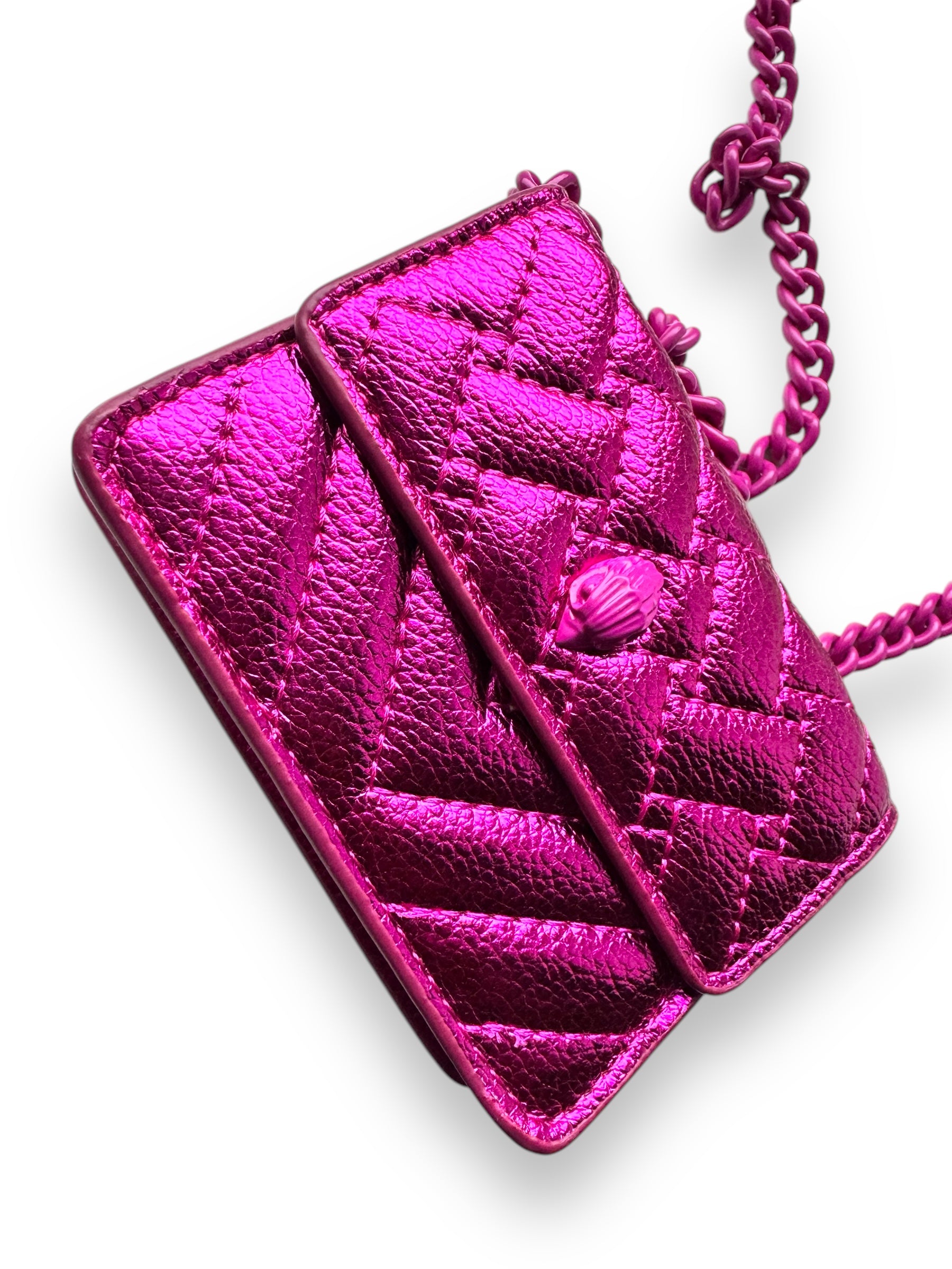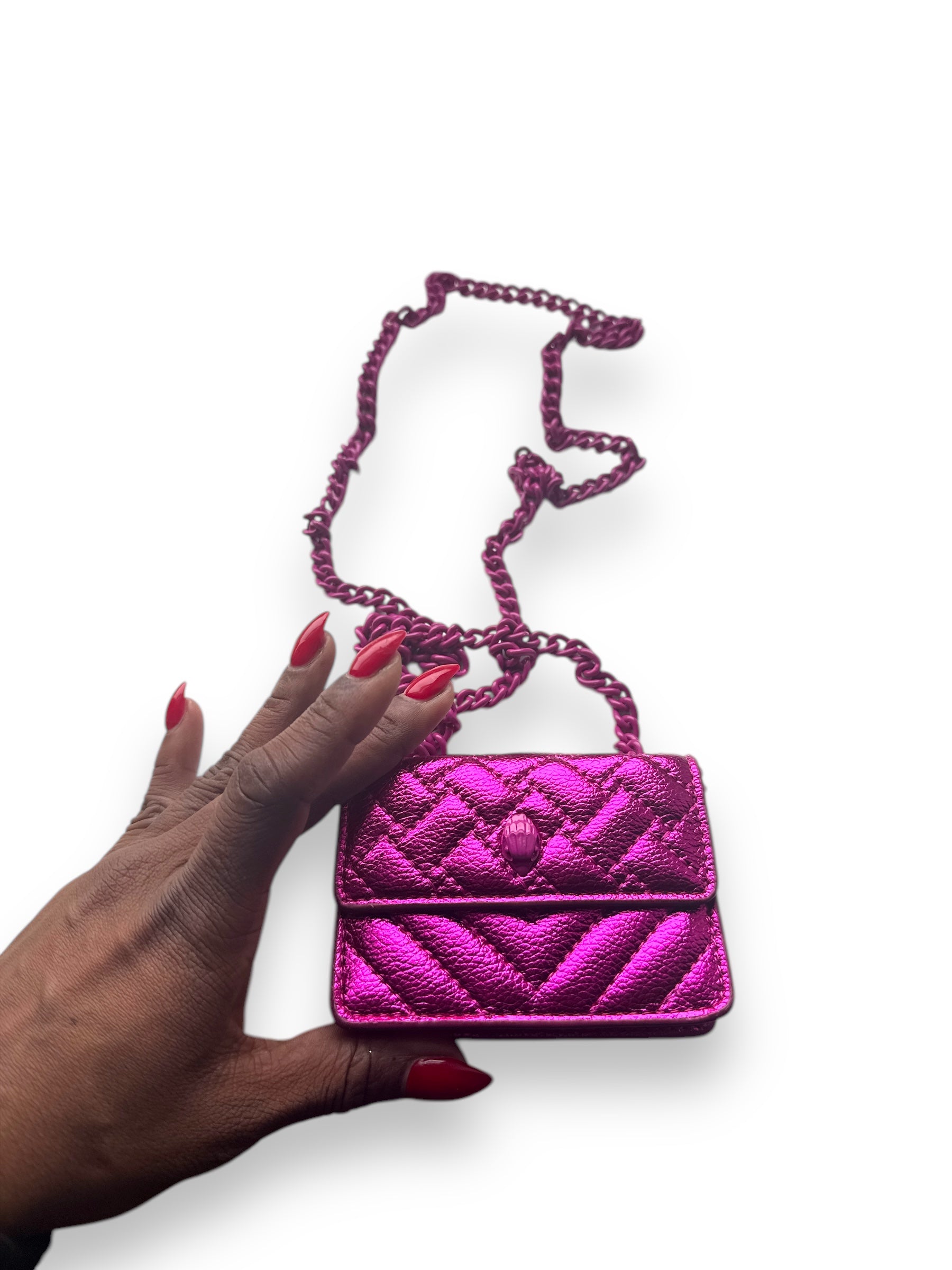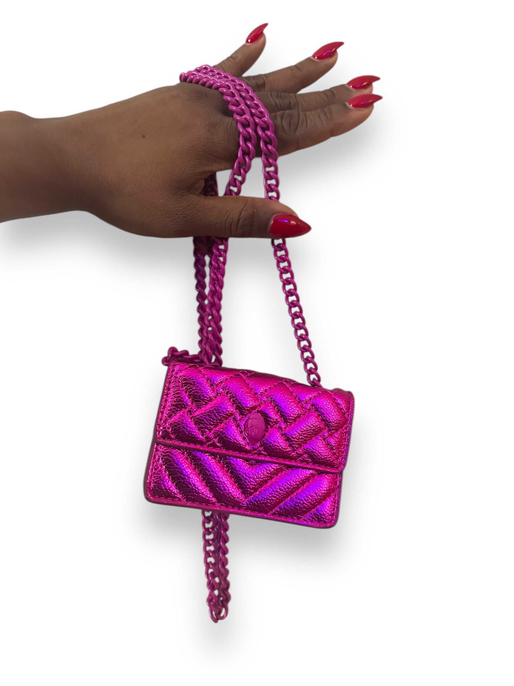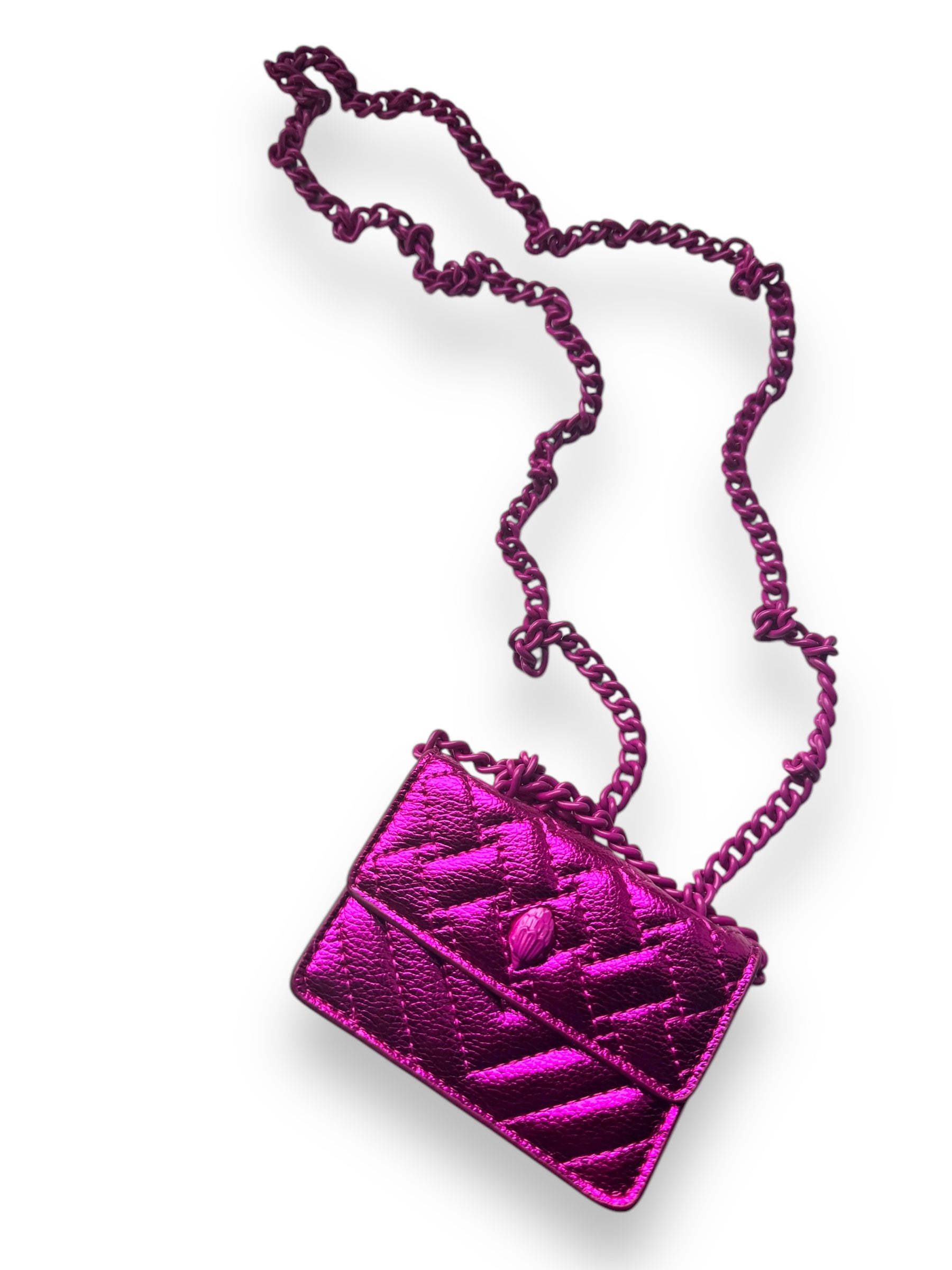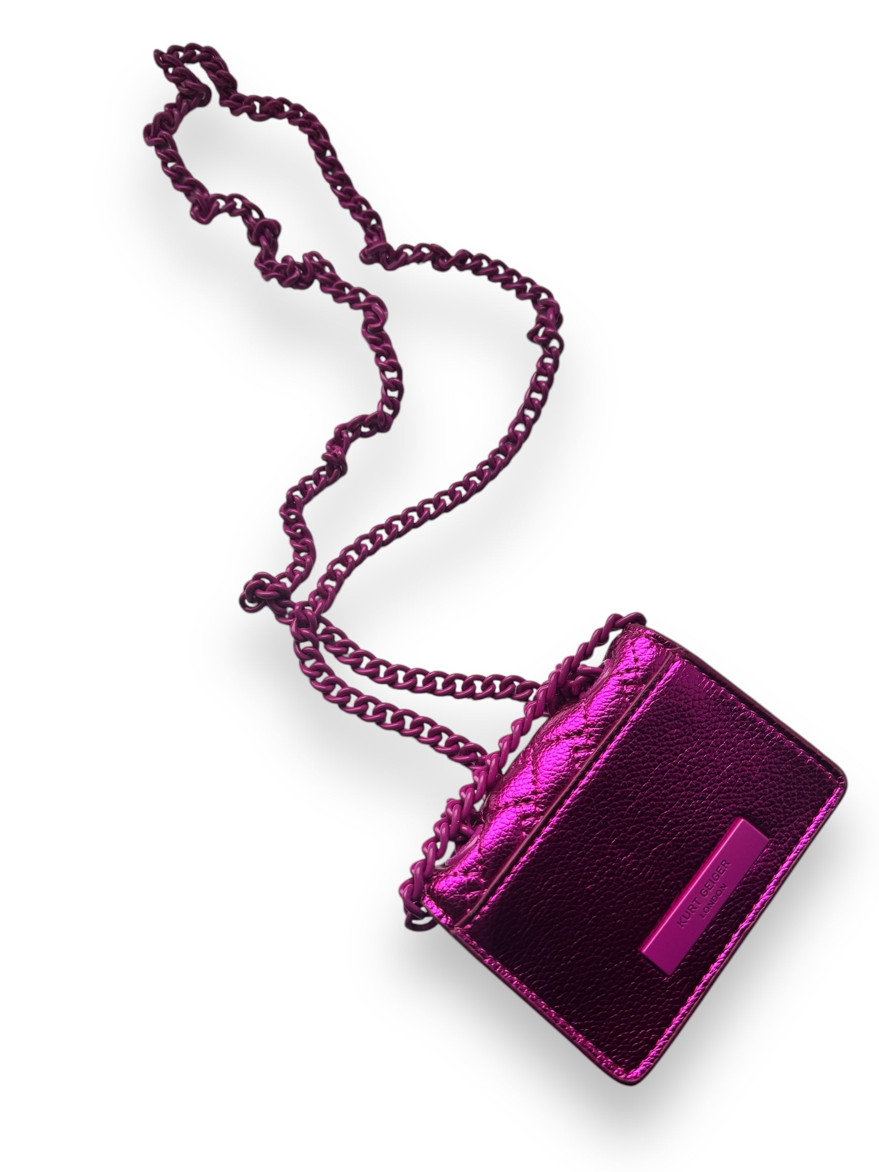 Elevate your ensemble with the Trend: Kurt Geiger (London) iridescent pink wallet on a chain. This stylish accessory adds a pop of color to any outfit. Spice up your look while keeping your essentials close at hand!