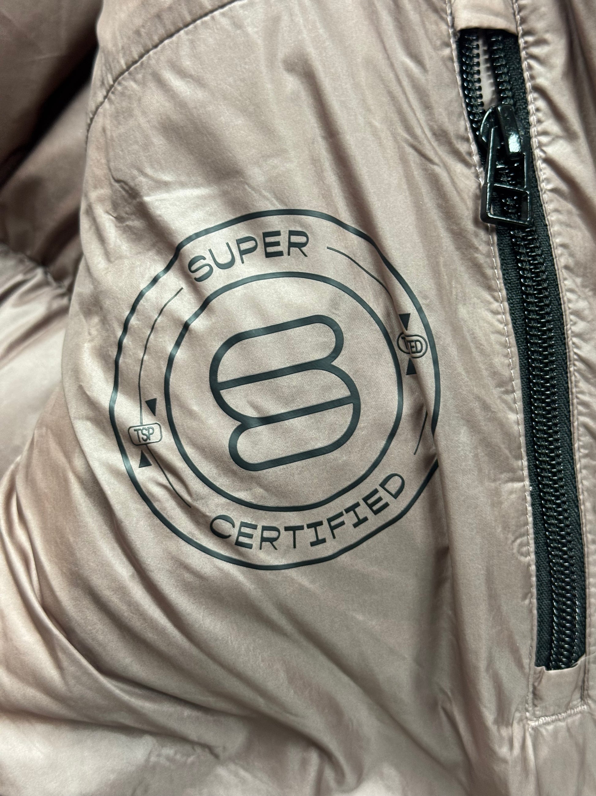 Trend: Liquid Shine 700+ Fill “Super Puff” Coat in Iridescent Pink