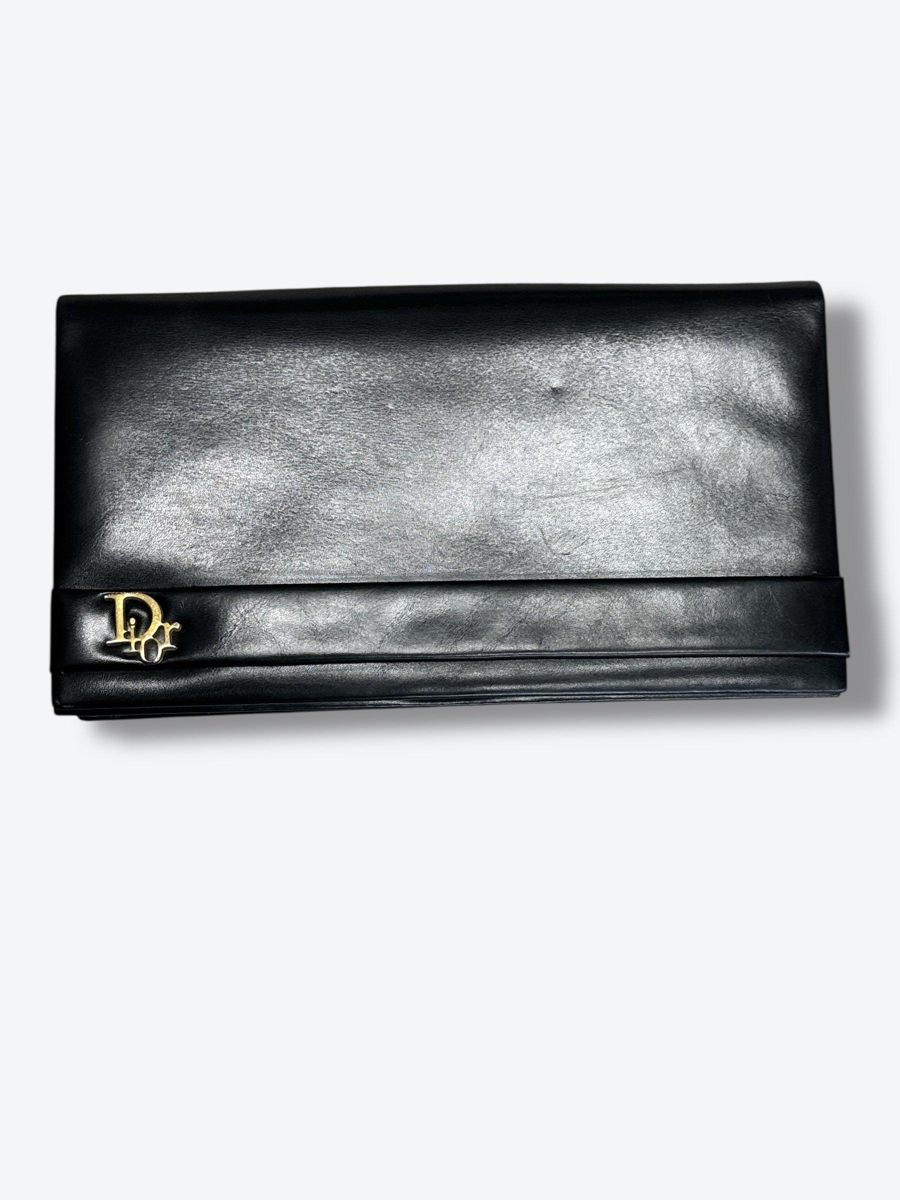 1970s Christian Dior Black Leather Logo Clutch