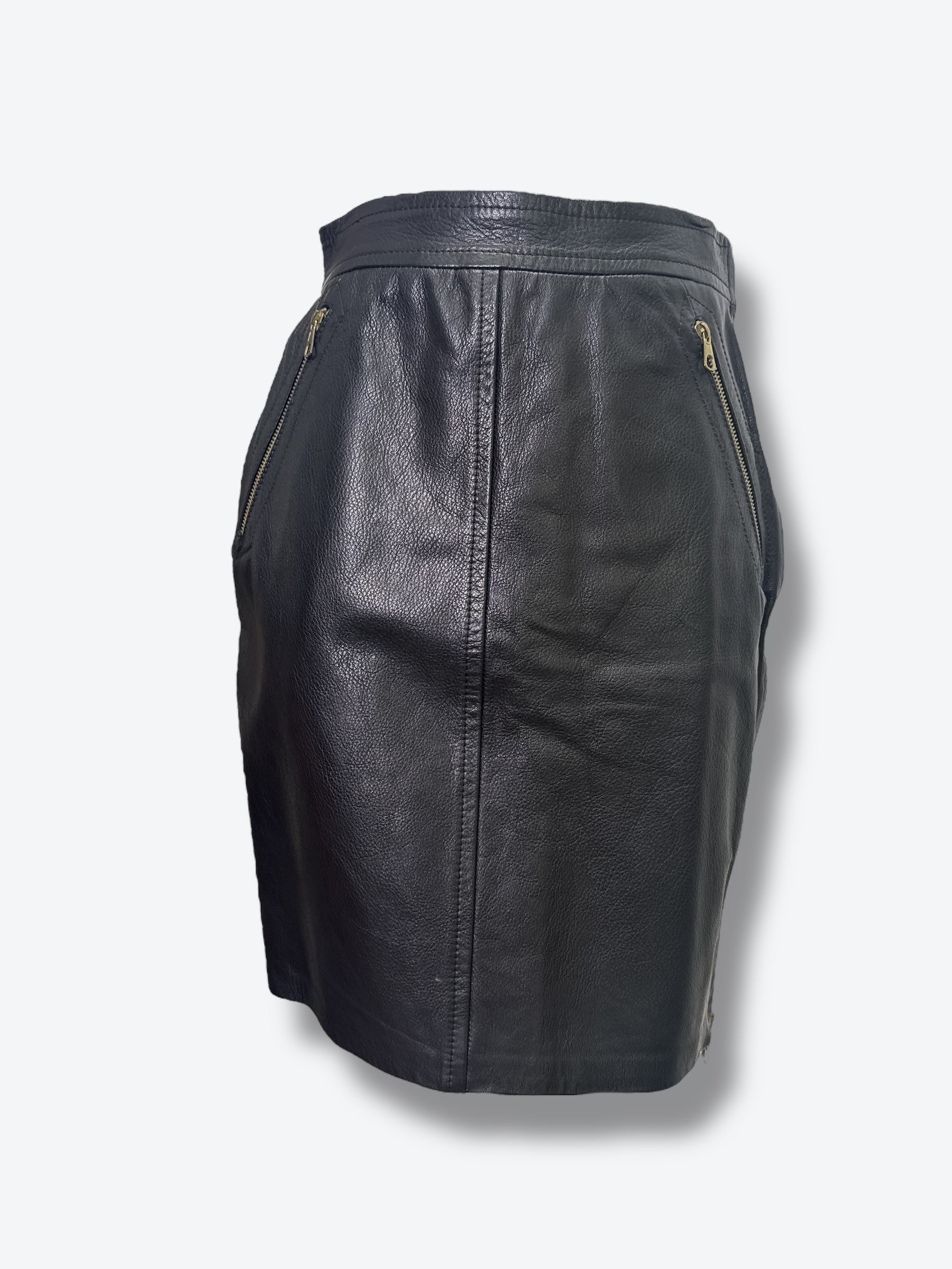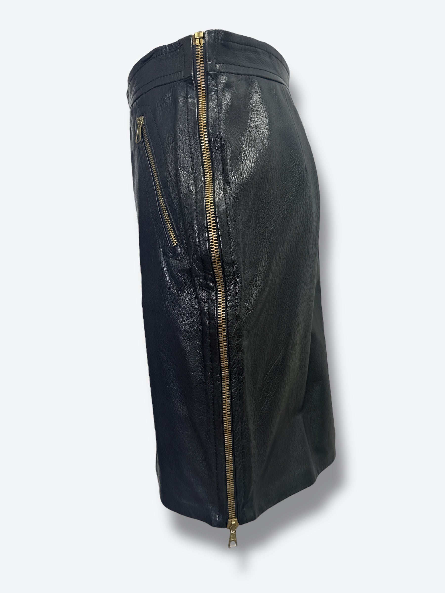 A rare gem from the early 1990s Moschino archive, this vintage high-waisted pencil skirt is crafted from 100% real leather and fully lined in soft rayon. Featuring sleek vertical paneling, dual front zip pockets, and expert Italian tailoring, it delivers structure with a dose of bold sophistication.