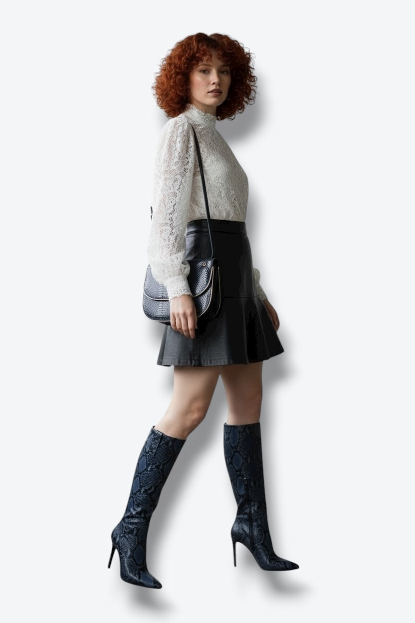 Style Tip: Pair this sleek bag with a lace blouse, leather mini, and tall snakeskin boots for a modern femme-fatale look, or wear it crossbody with a cashmere turtleneck and tailored trousers for understated luxury. It’s the perfect piece to elevate your black-on-black wardrobe with texture and shine.