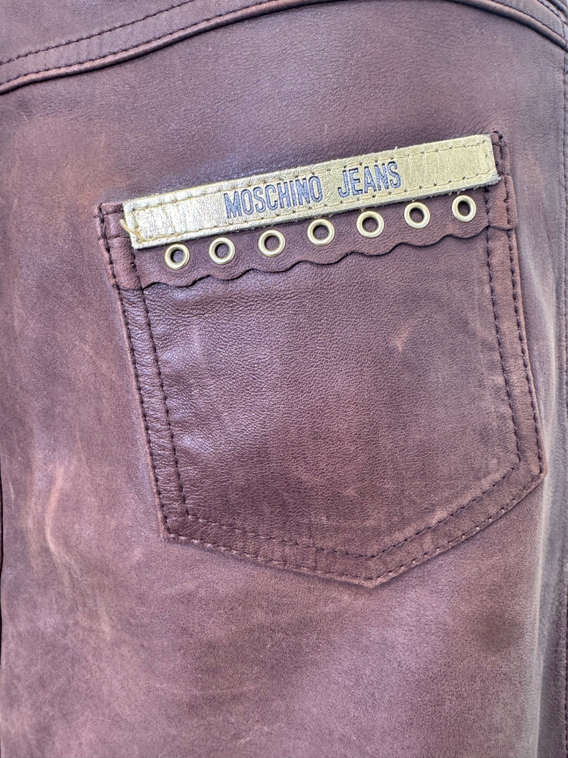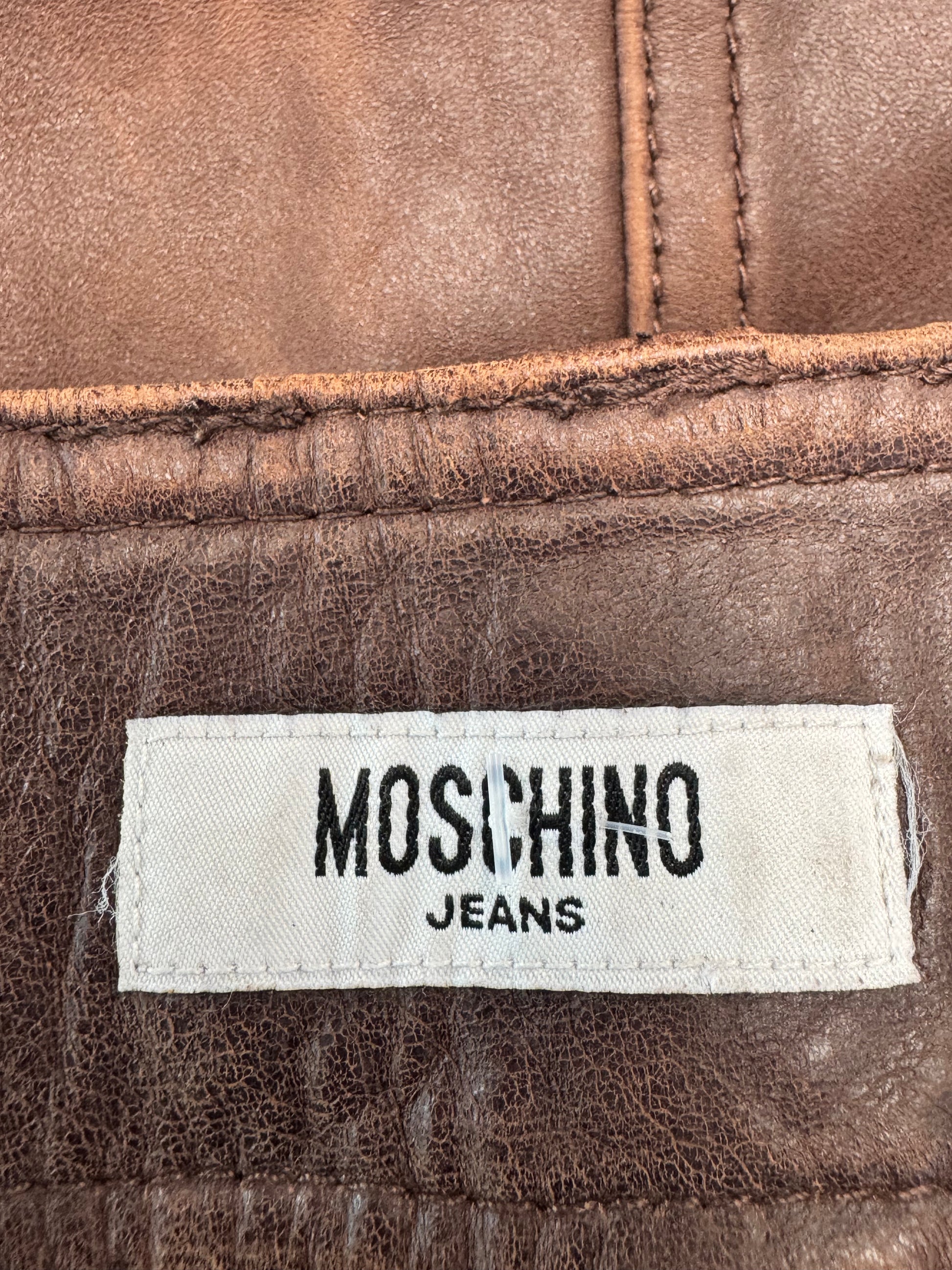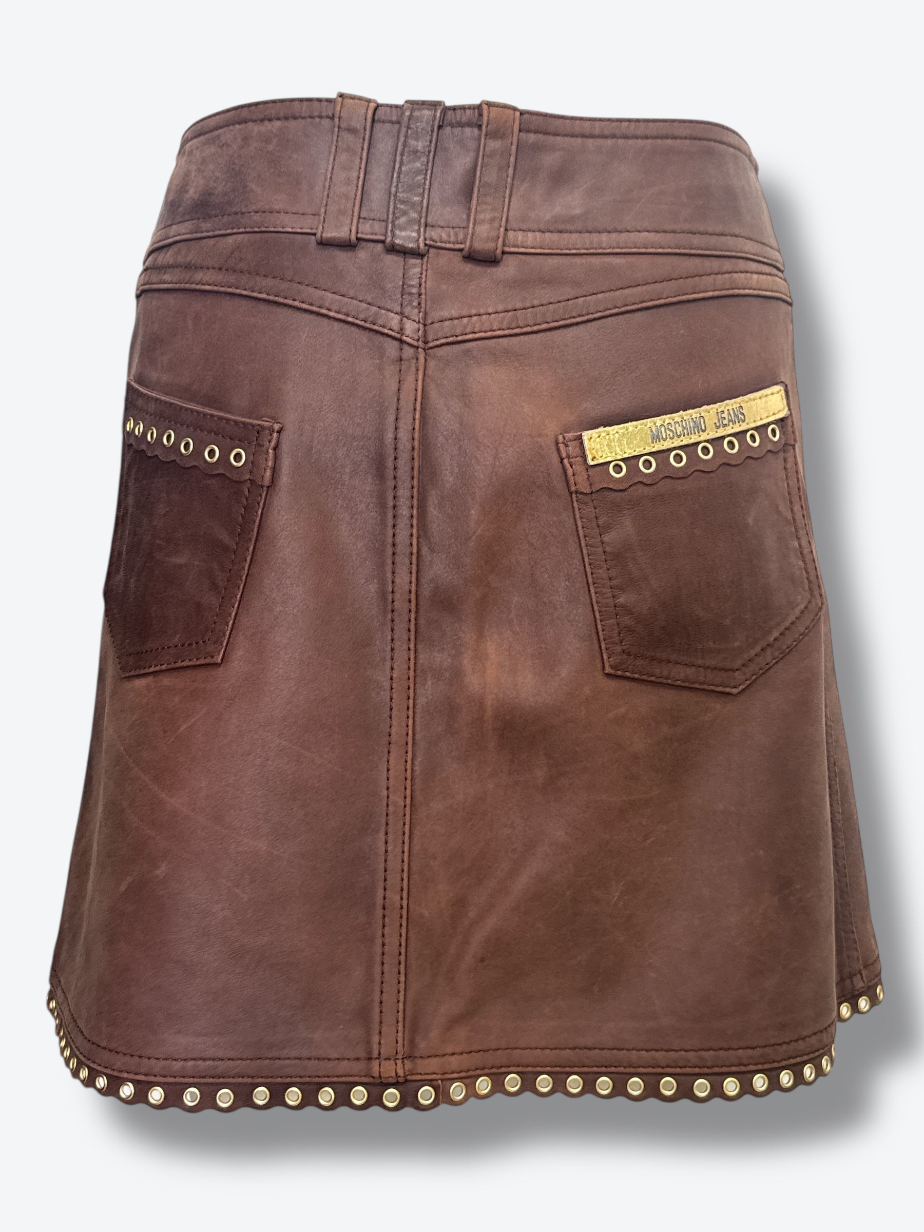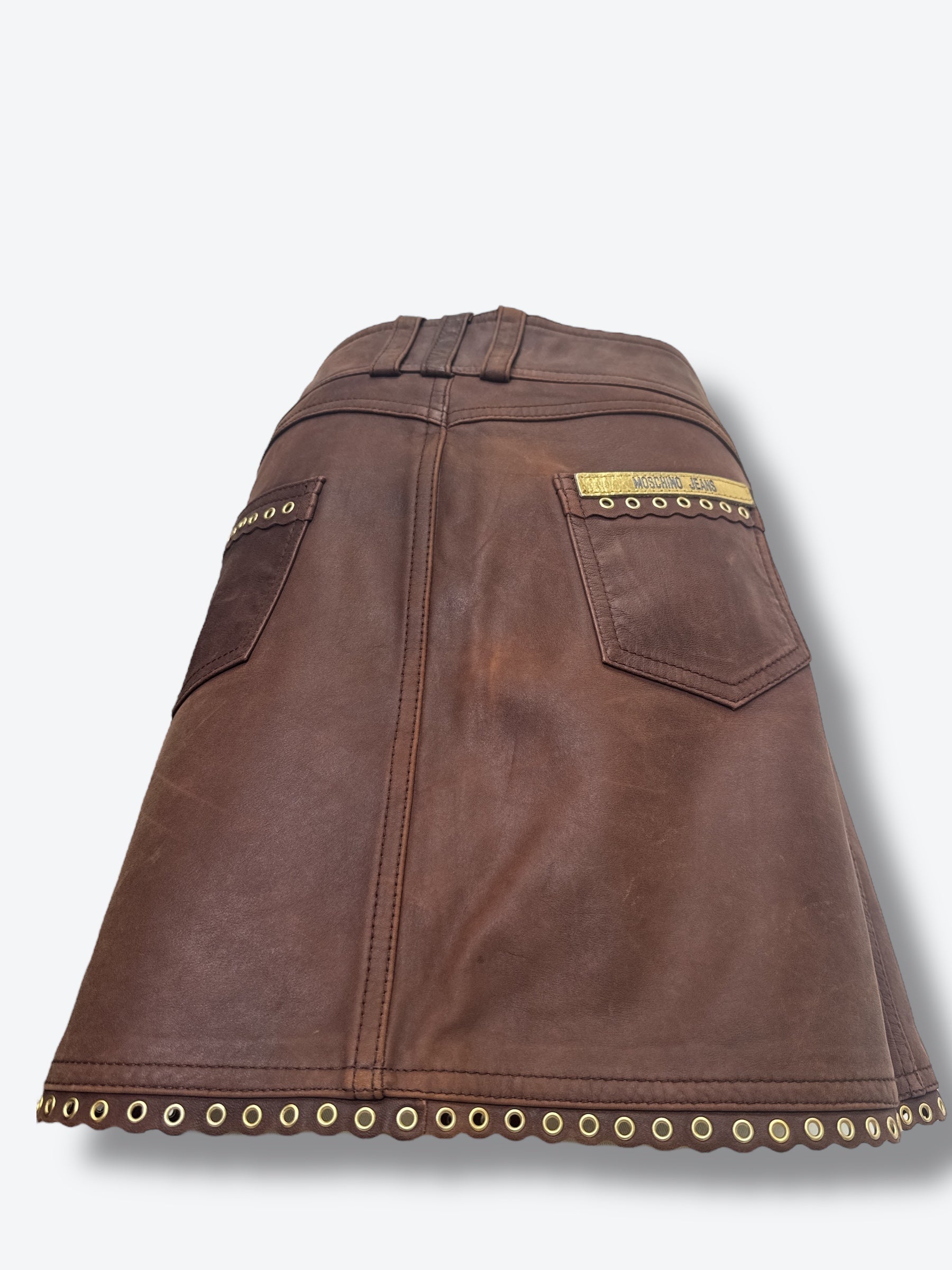 #19. Y2K Moschino Brown Leather Grommet Buckle Mini Skirt