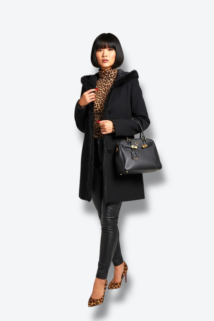 Style Tip: Pair this coat with high-shine leather pants and a bold animal-print turtleneck for an unapologetically chic, city-ready look. Finish with leopard heels and a structured Prada handbag for an elevated Y2K revival moment that channels timeless sophistication with a modern twist.