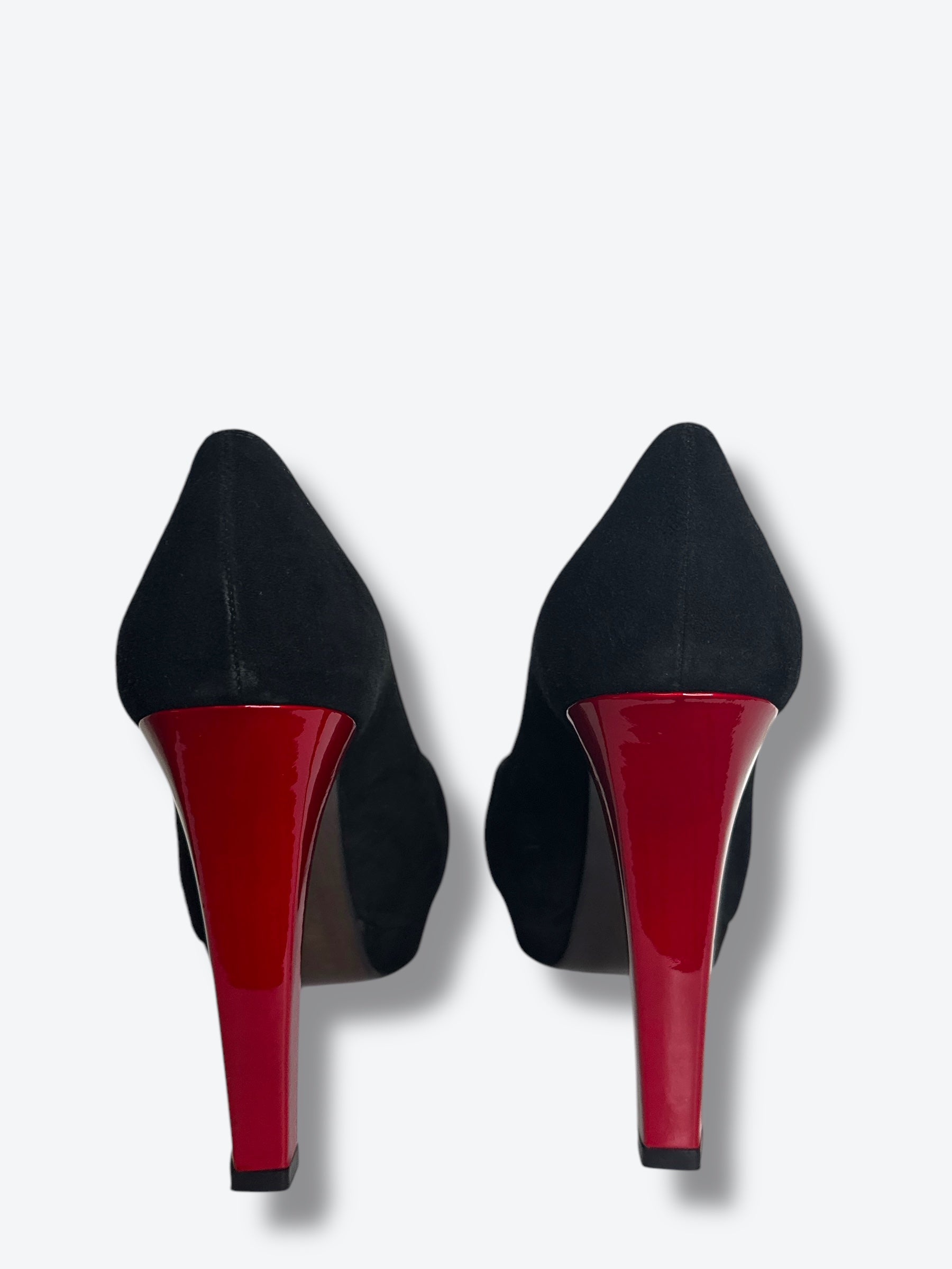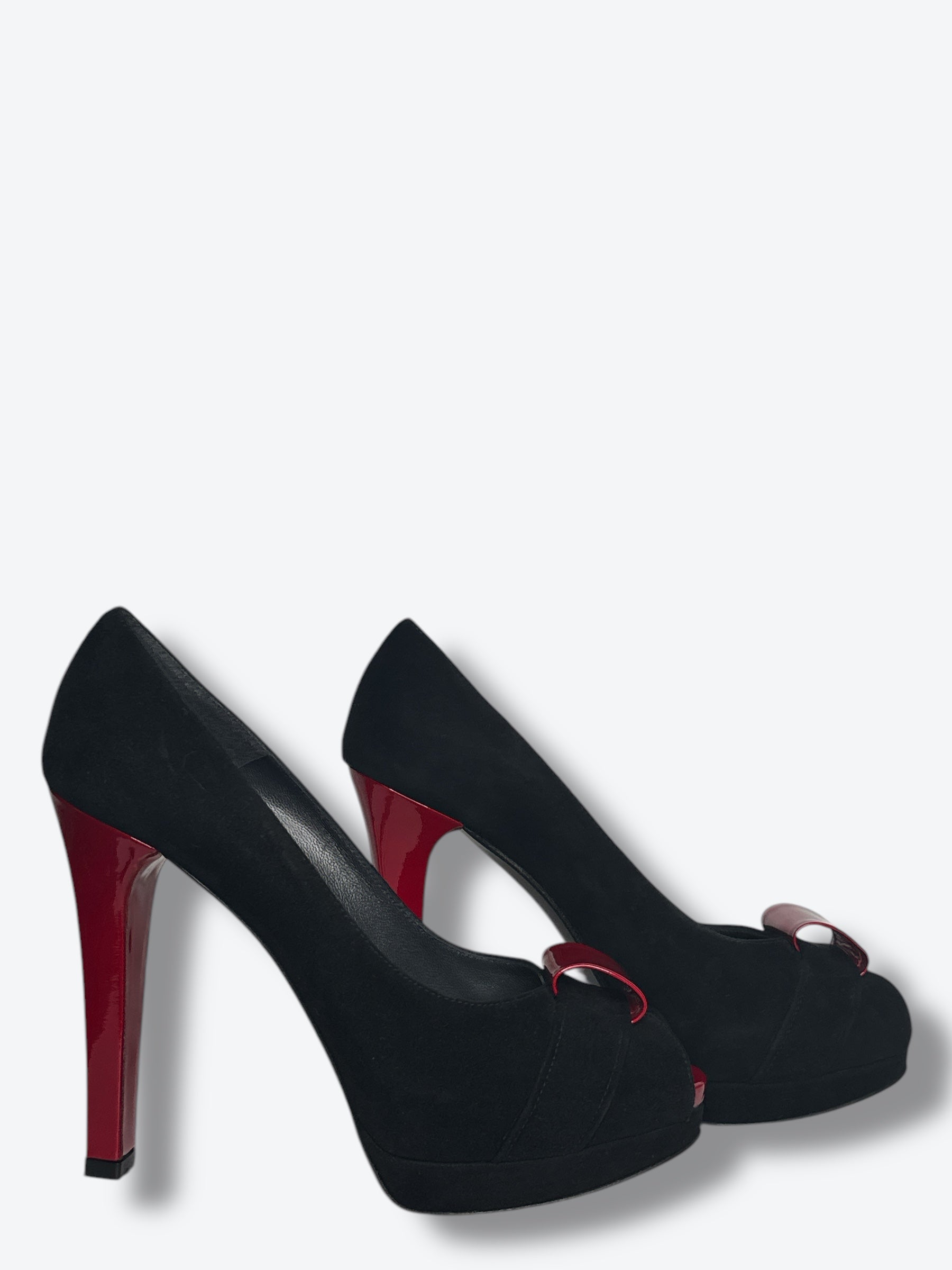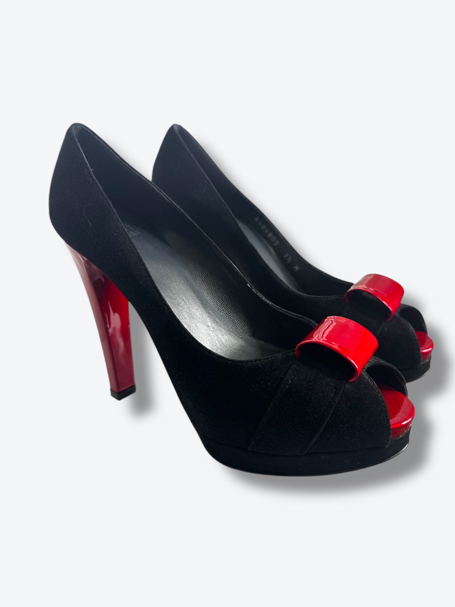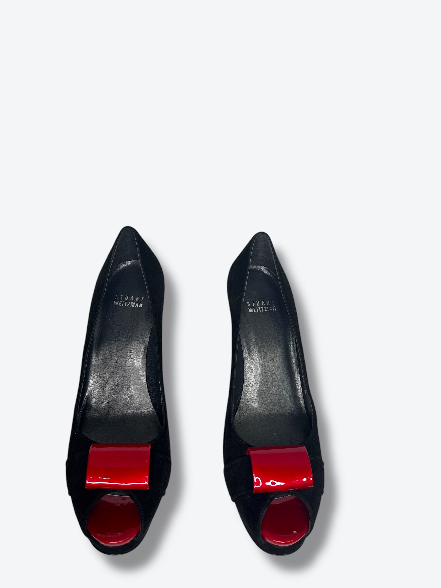 Y2K Stuart Weitzman Black Suede and Red Shoes